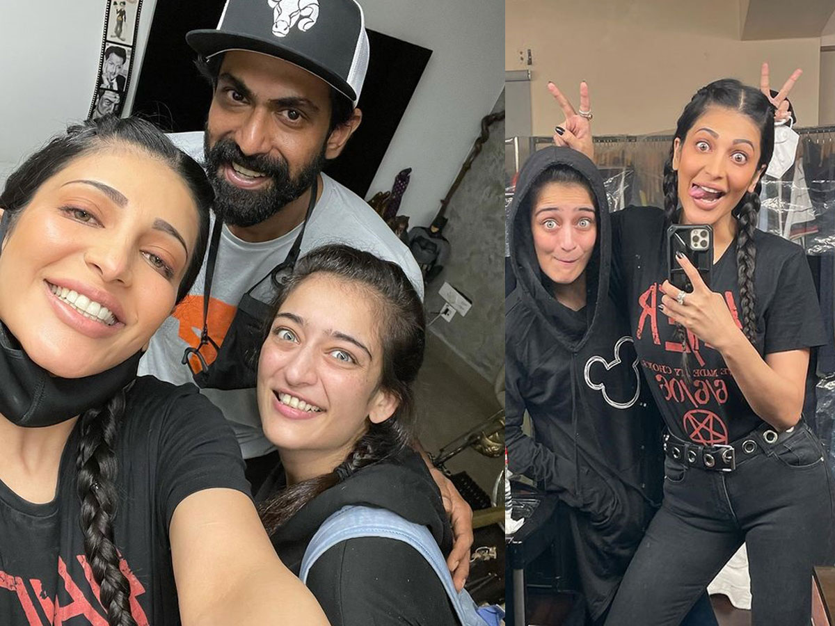 Rana Daggubati has been spotted near lounging with the Haasan siblings in the telugu cinema. shruti haasan, the child of renowned filmmaker kamal haasan and Sarika, and an avid user of social networking sites shared a selfie with rana daggubati and her sibling akshara haasan on Insta. “Good folk = happy times made anything wonderful tonight that makes me so happy to make artwork and I get to be among incredibly gorgeous people,” wrote the starlet of Vakeel Saab and krack fame.