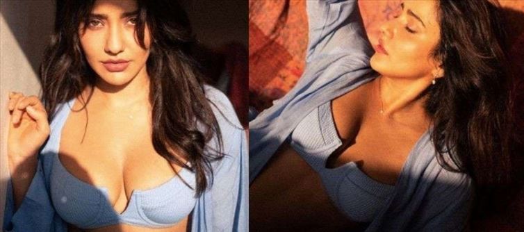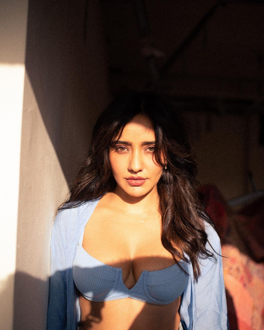 She tagged her shot, "#Raw #nophotoshop #noretouch." The starlet had previously revealed portrait images from the same photo shoot, and she looked as drool-worthy as ever. Neha is pictured here posing against a wall with a blank expression on her face. She used heart emojis to share the photos. The actress has raised the hotness to a new level by exposing her bra and unbuttoned shirt and she never even covered with tresses.