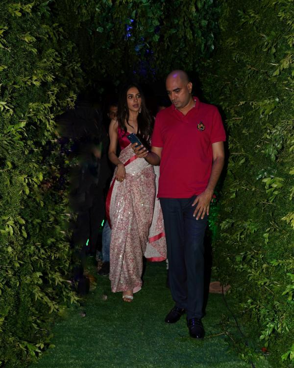 At the pre-release ceremony for her next film Konda Polam, rakul preet singh was seen looking stunning in a pink sequin saree. The sequin saree, combined with a pink blouse, mild peachy makeup, and minimal accessories, gives her a radiant shine. The actress nailed the outfit and ensured that all attention were on her. Along with rakul, Panja Vaissnav Tej, the film's principal actor, was also seen at the occasion dressed up.