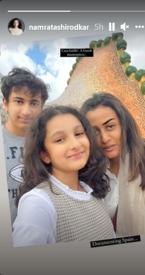 Mahesh Babu and his family are now on holiday in spain, and the photos from their trip are really gorgeous. At the same time, the performer is filming his next feature, Sakaru Vaari Paata, in Spain. mahesh babu and his kids had a wonderful time in spain on Sunday. namrata Babu, Mahesh Babu's spouse, published a photograph with her two children gautam and Sitara beside Casa Batllo on Instagram. However, Mahesh is absent from the photograph; perhaps he was preoccupied with his assignment.