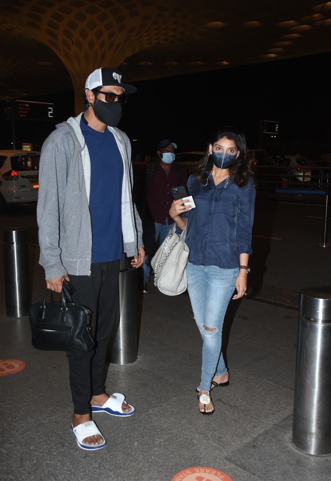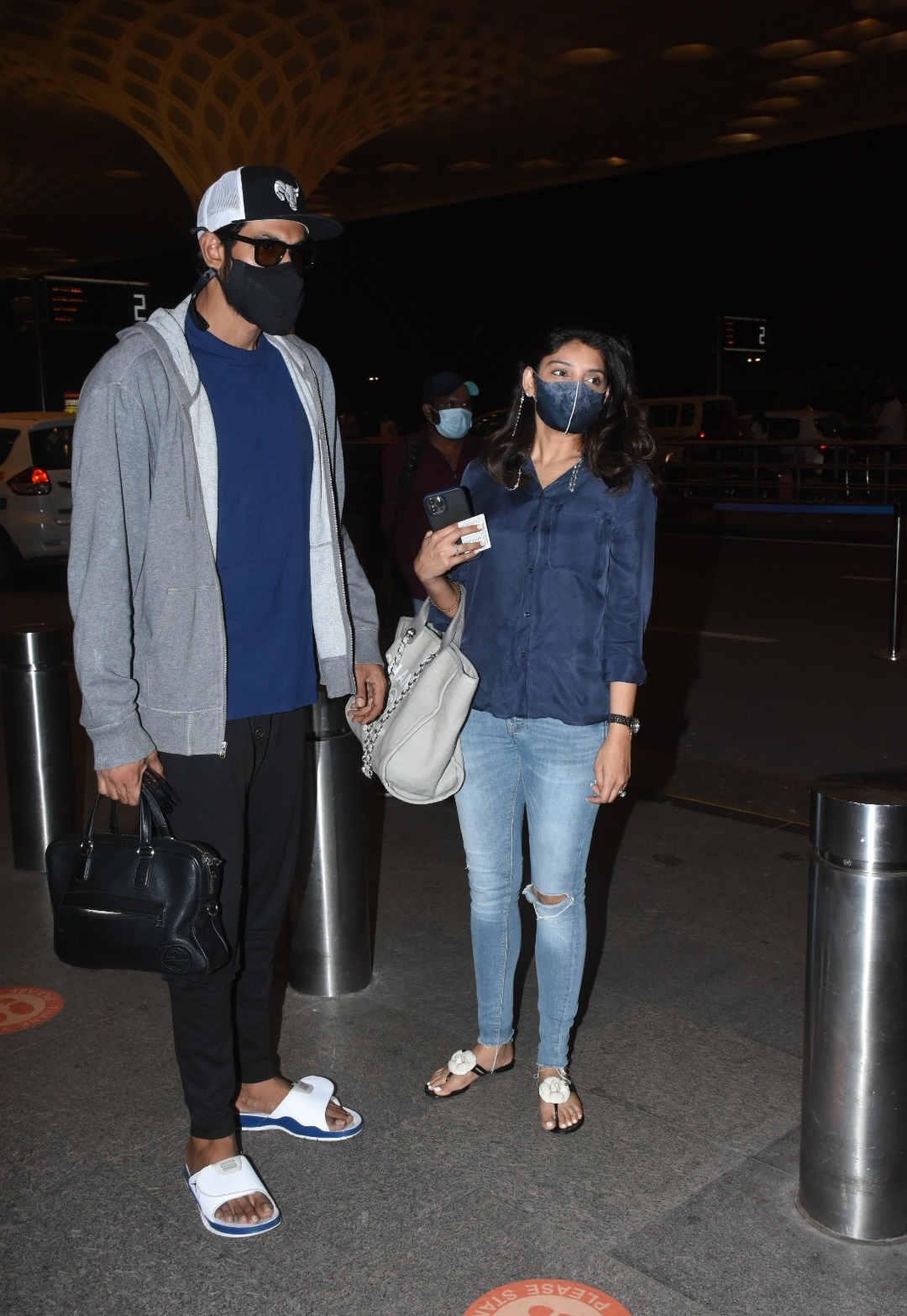 Rana Daggubati and Miheeka Bajaj, a cute tollywood pair, were sighted at the mumbai airport last night. The couple looked incredibly lovely in matching attire, despite the fact that it is unknown where they are going. In blue, Rana and Miheeka may be seen merging. Miheeka Bajaj appeared lovely in frayed denim jeans, a blue shirt, and white flats, while the Baahubali star was seen in his casual yet cool outfit. They have both been observed sporting face masks, as if they were adjusting to the new routine.