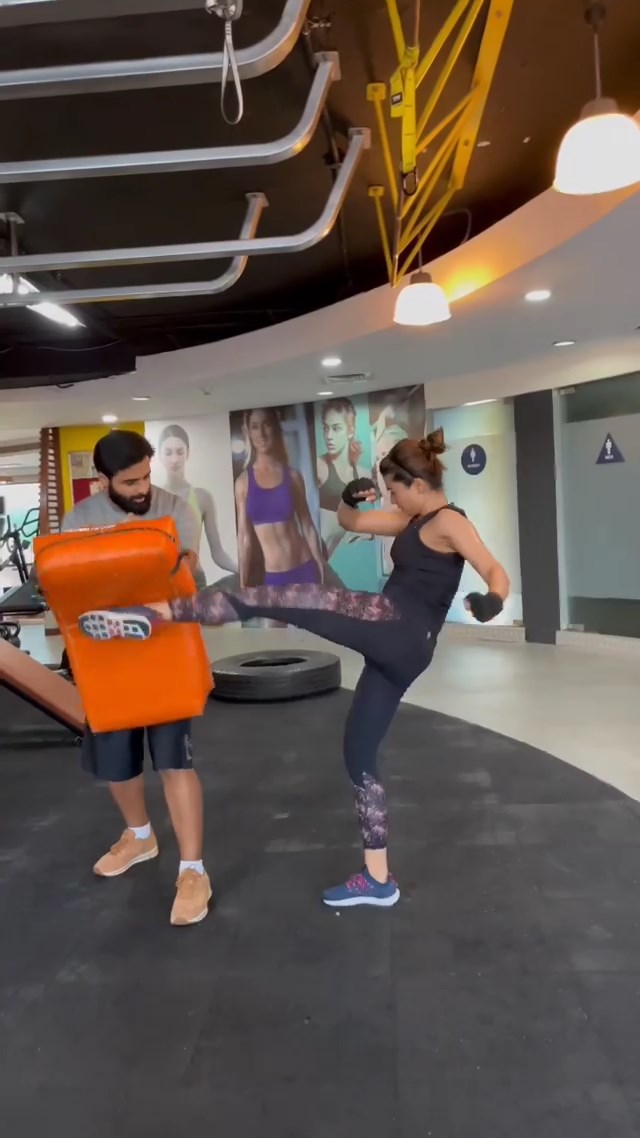 It is not, however, a typical training video, since she is expressing her rage and irritation. Rashmika's instagram account is full with glimpses from her training journals, which properly reflect her commitment to her fitness. She uploaded a video today to show what she does when she's "very irritated" and everyone needs to be on their guard. She can be seen training kickboxing with her instructor in the clip. rashmika can be seen pushing it further in a sleeveless top and gray and black patterned pair of gym shorts.