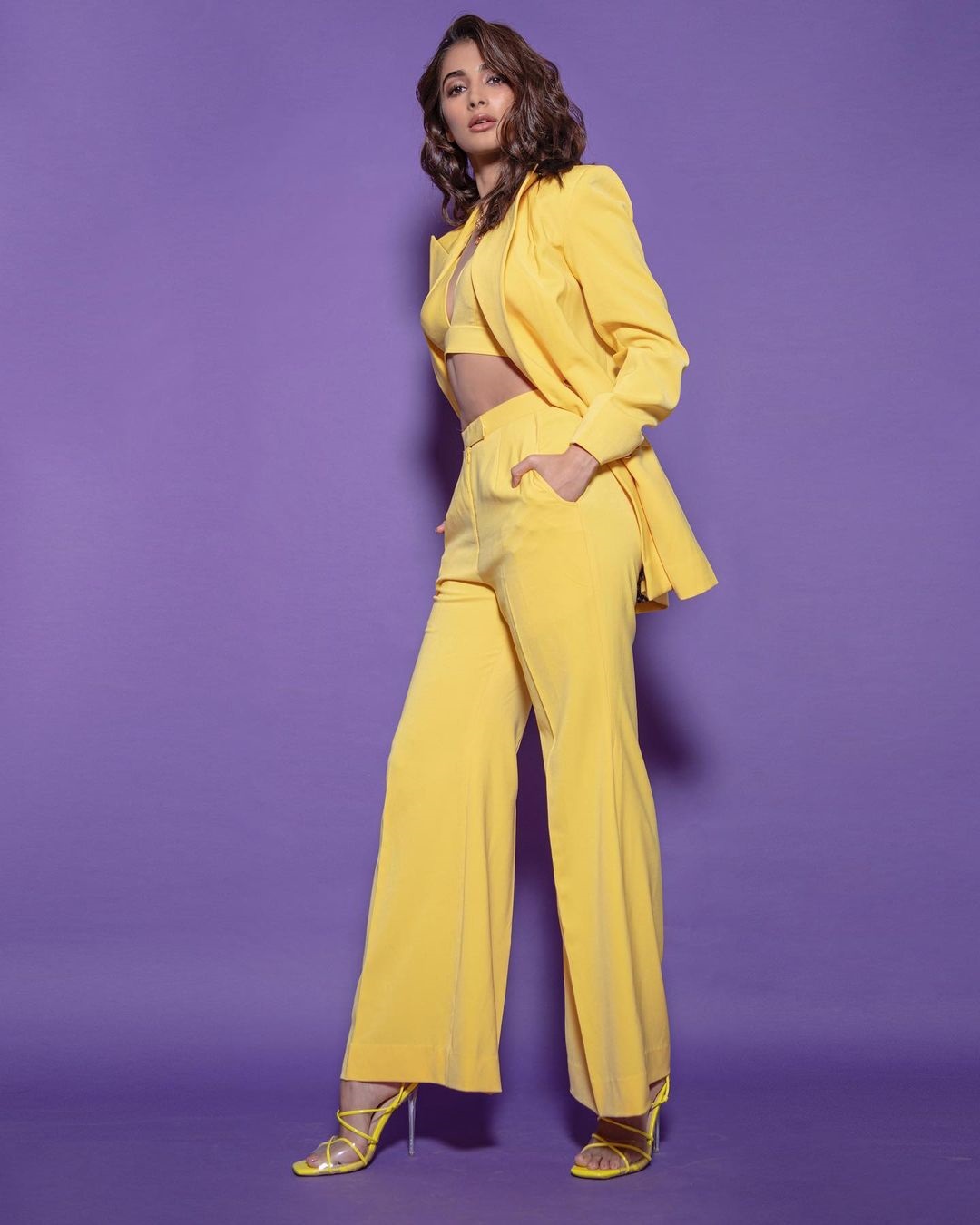 Her newest photo session has a yellow outfit from head to toe. While her fans are reposting her photos, some are amusingly inquiring if she is a member of the TDP. Yellow is used on the top, the jacket, the pants, and the shoes. The actress recently spilled the beans about buying a posh residence in mumbai and she herself is taking care of all the internal works and designs along with her mother.