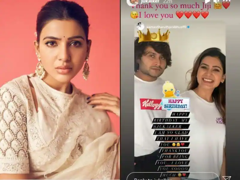 Samantha frequently shares adorable images and videos of herself and her dogs with her instagram followers. On november 18, she shared a humorous footage of herself doing Sadhna Singh's cosmetics on her instagram stories. She is seen putting a blue lipstick tint on Sadhna Singh. Preetham Jukalker, a famous fashionista, may be seen applying lipstick to Sadhna's nose. They had a terrific time altogether.