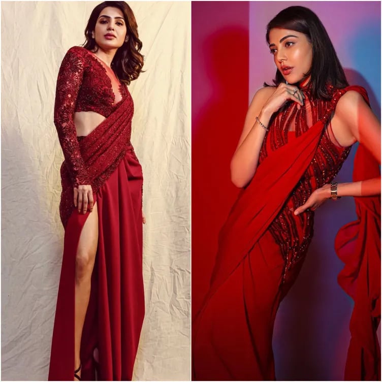 However, sequins seem to be all the rage this winter, and a splash of deep red is all the rage. samantha and Kajal Aggarwal, the two hotties of the South, wore nearly identical red sarees and looked equally lovely. So who better to compete in a fashion showdown than them, right? samantha chose a luxurious yet composed saree attire for her appearance as a presenter at IFFI 2021 Goa.