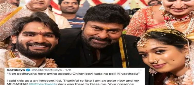 అయితే ఇటీవలే హీరో కార్తికేయ తన చిన్ననాటి స్నేహితురాలిని పెళ్లి చేసుకుని ఒక ఇంటివాడు అయ్యాడు అన్న విషయం తెలిసిందే. అయితే కార్తికేయ పెళ్ళికి మెగాస్టార్ చిరంజీవి ముఖ్య అతిథిగా విచ్చేశారు. మెగాస్టార్ చిరంజీవి కార్తికేయ వీరాభిమాని అన్న విషయం తెలిసిందే. తన అభిమాన హీరో తన పెళ్లికి రావడంతో కార్తికేయ ఉబ్బితబ్బిబ్బైయ్యాడు. ఇటీవలే తన ఆనందాన్ని సోషల్ మీడియా వేదికగా అభిమానులతో పంచుకున్నాడు కార్తికేయ. నేను పెద్దయ్యాక హీరో అవుతాను అప్పుడు నా పెళ్ళికి చిరంజీవి కూడా వస్తారు అని చిన్నప్పుడు చెప్పాను ఇక ఇప్పుడు ఆ కల నిజమైంది. నా పెళ్ళికి మెగాస్టార్ వచ్చి ఆశీర్వచనాలు అందించారు అంటూ కార్తికేయ చెప్పుకొచ్చారు.