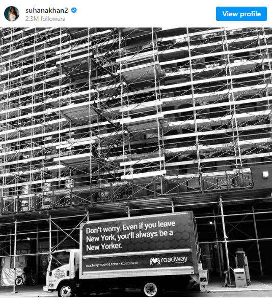 She shared a black and white image of a building and a truck moving. A note written in it says that even if you leave New York City, you will be a New Yorker always. She posted this with a heartbroken emoji with her caption.