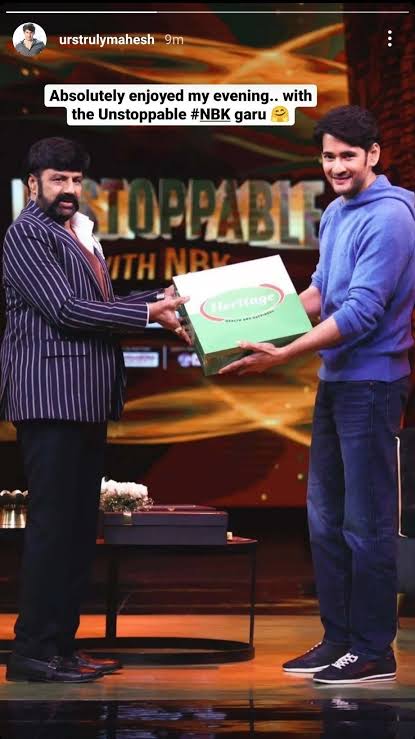 అందులో భాగంగా మూడవ ఎపిసోడ్ కు తెలుగు ప్రముఖ కమెడియన్ బ్రహ్మానందం, ప్రముఖ దర్శకుడు అనిల్ రావిపూడి గెస్ట్ లుగా వచ్చారు. ఇలా ఇప్పటికే బాలకృష్ణ మూడు ఎపిసోడ్ లను సక్సెస్. అయితే తాజాగా మహేష్ బాబు, బాలకృష్ణ  టాక్ షో  కు గెస్ట్ వచ్చాడు,  ఈ ఎపిసోడ్ కు సంబంధించిన షూటింగ్ ఈ మధ్యనే పూర్తి అయ్యింది, దీనికి సంబంధించిన ఫోటోలు ఇప్పుడు నెట్టింట్లో తెగ వైరల్ అవుతున్నాయి. అయితే తాజా గా బాలకృష్ణ షో లో పాల్గొనడంపై మహేష్ బాబు స్పందిస్తూ.. నా సాయంత్రాన్ని అన్ స్టాపబుల్ NBK తో పూర్తి గా ఆనందించాను అంటూ రాసుకొచ్చారు. ఇది ఇలా ఉంటే ప్రస్తుతం సూపర్ స్టార్ మహేష్ బాబు  సర్కారు వారి పాట సినిమాలో హీరో గా నటిస్తున్నాడు.
