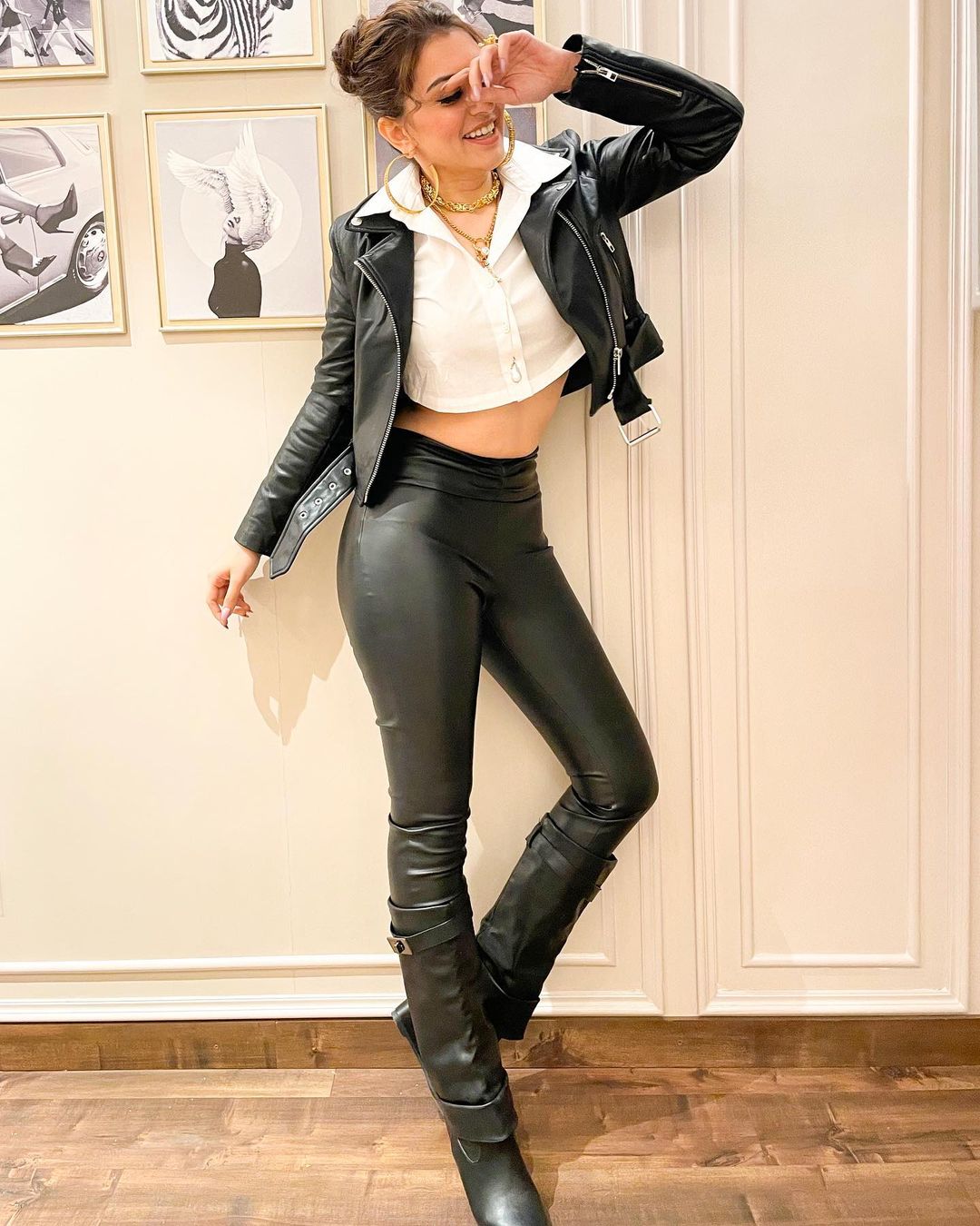 Here's a fresh style for the day that you may wear out with your mates to kill. The starlet wore high-waist brown wide-leg slacks that matched her slim frame, and a white crop top with a rectangle-shaped silvery embroidered accent and little ruffled sleeves made of taffeta added a touch of charm. hansika motwani always puts her leading fashion feet on the ground forward, whether she's at the terminal or on the main stage.