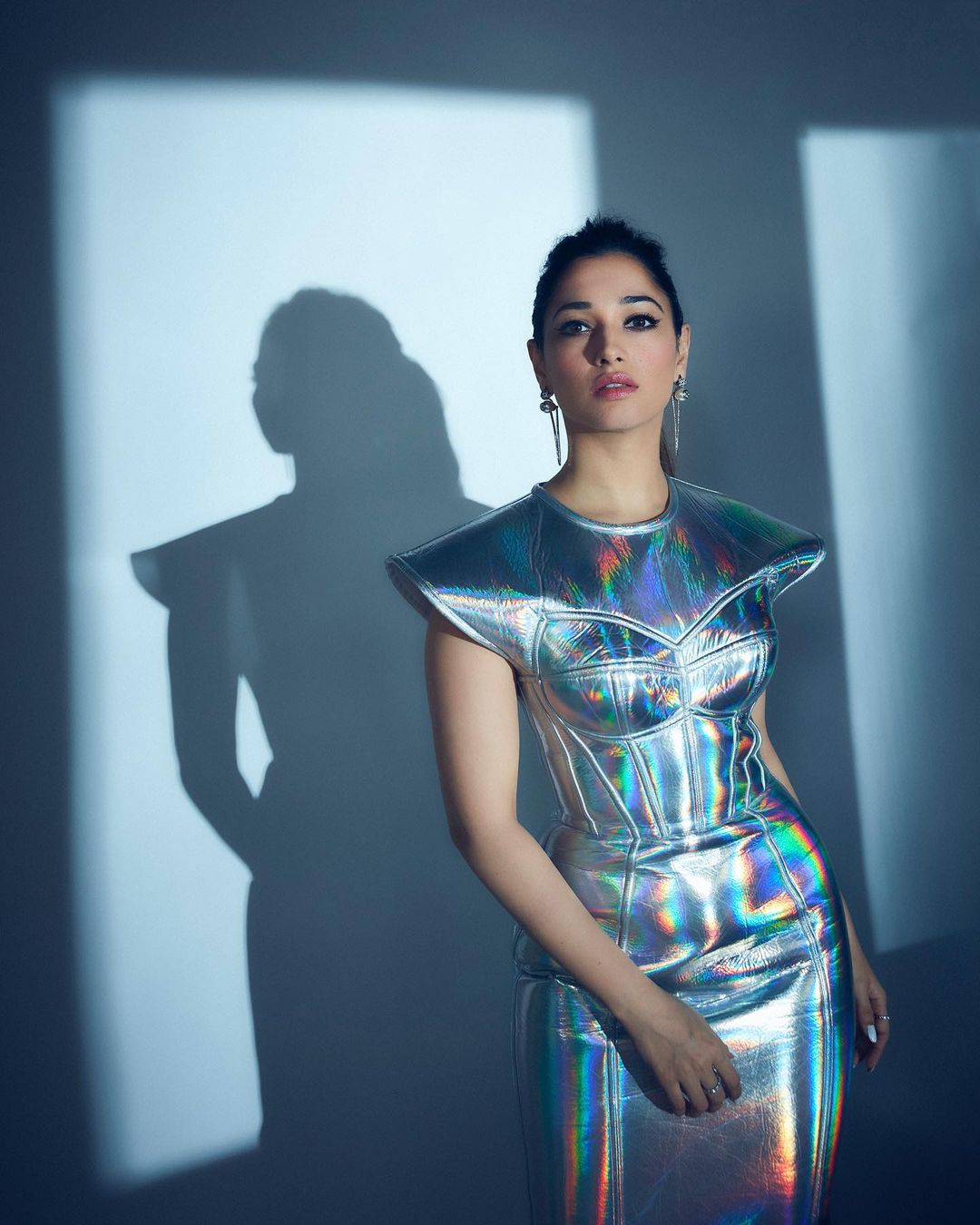 Tamannaah Bhatia accentuated her look with a messy hairstyle, soft smoky eyelids, and lots of mascara, fashioned by Shaleena Nathani. She added a pair of dramatic earrings to her ensemble. Sye Raa complemented her ensemble with a pair of high-end Christian Louboutin footwear. tamannaah bhatia obviously has an outstanding sense of style and isn't afraid to try new things with her personal style. Tam is currently filming for F3, starring Venkatesh, varun Tej, and mehreen Pirzada. She's working on a few other projects right now.