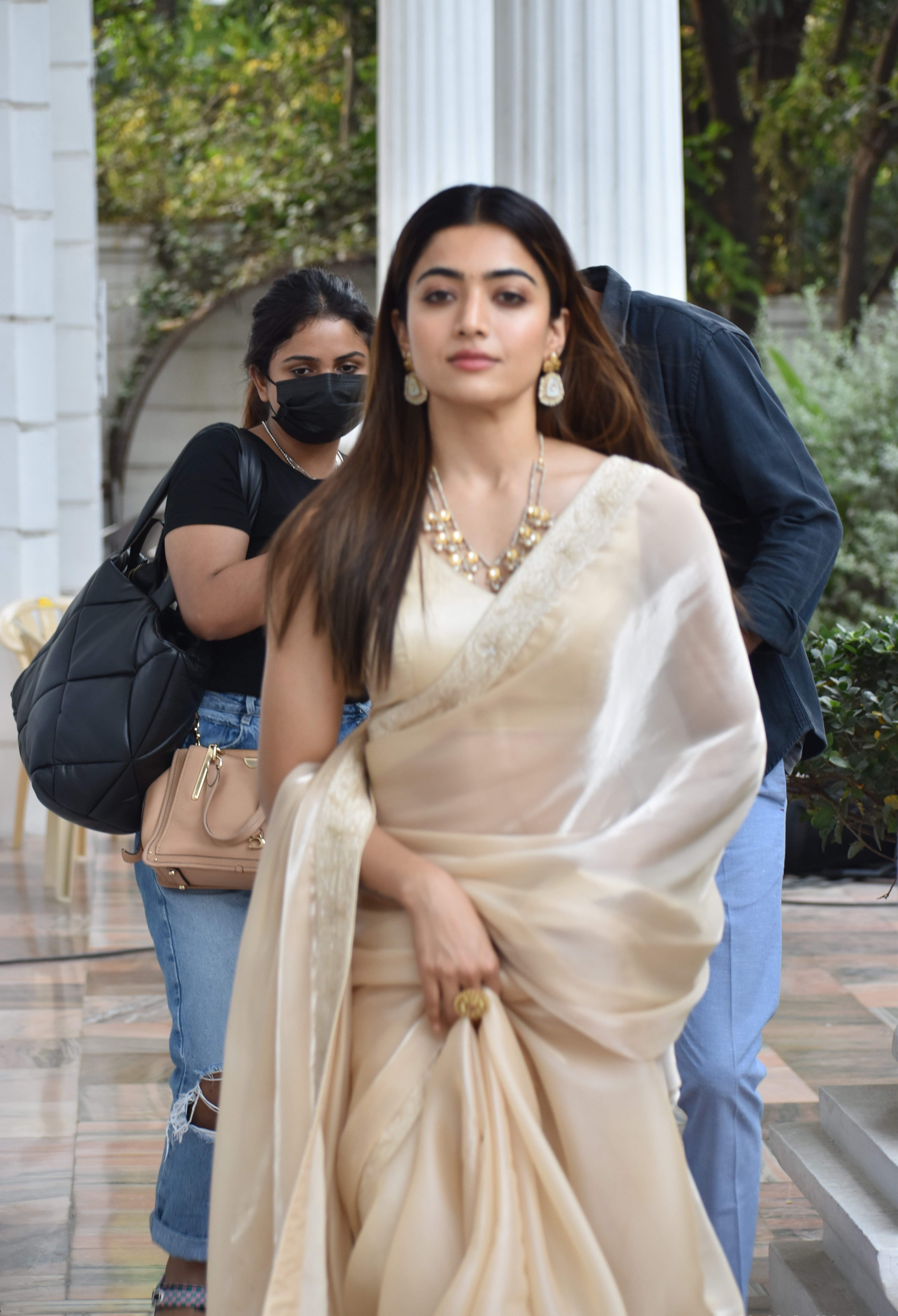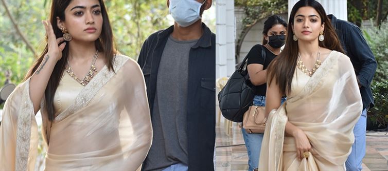 Rashmika Mandanna prefers to up her glamour quotient in saree these days and she decided to play it that way by exposing her assets in a desi way. The actress recently wore a transparent black saree and hot photos turned the Internet to a whole new level.