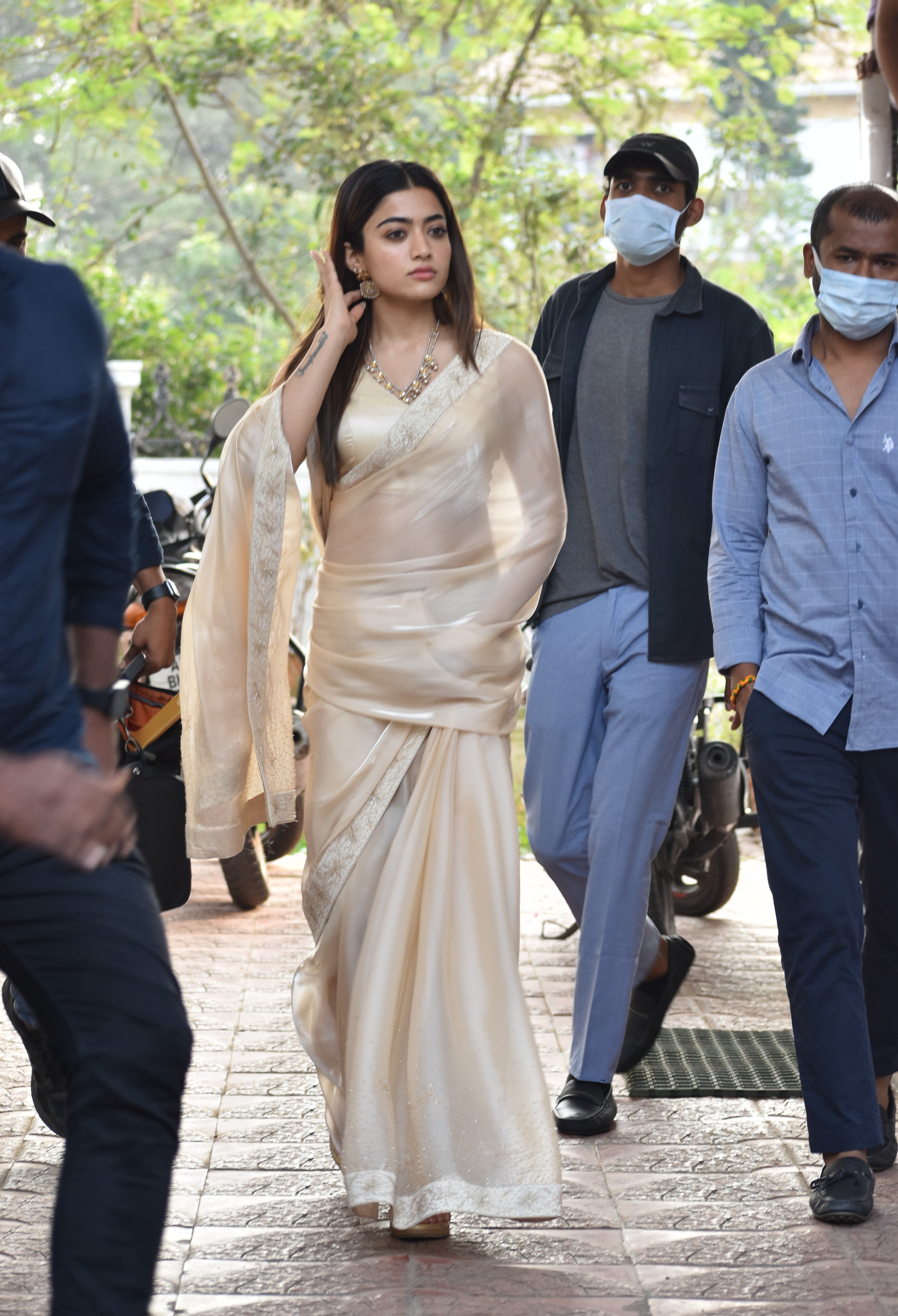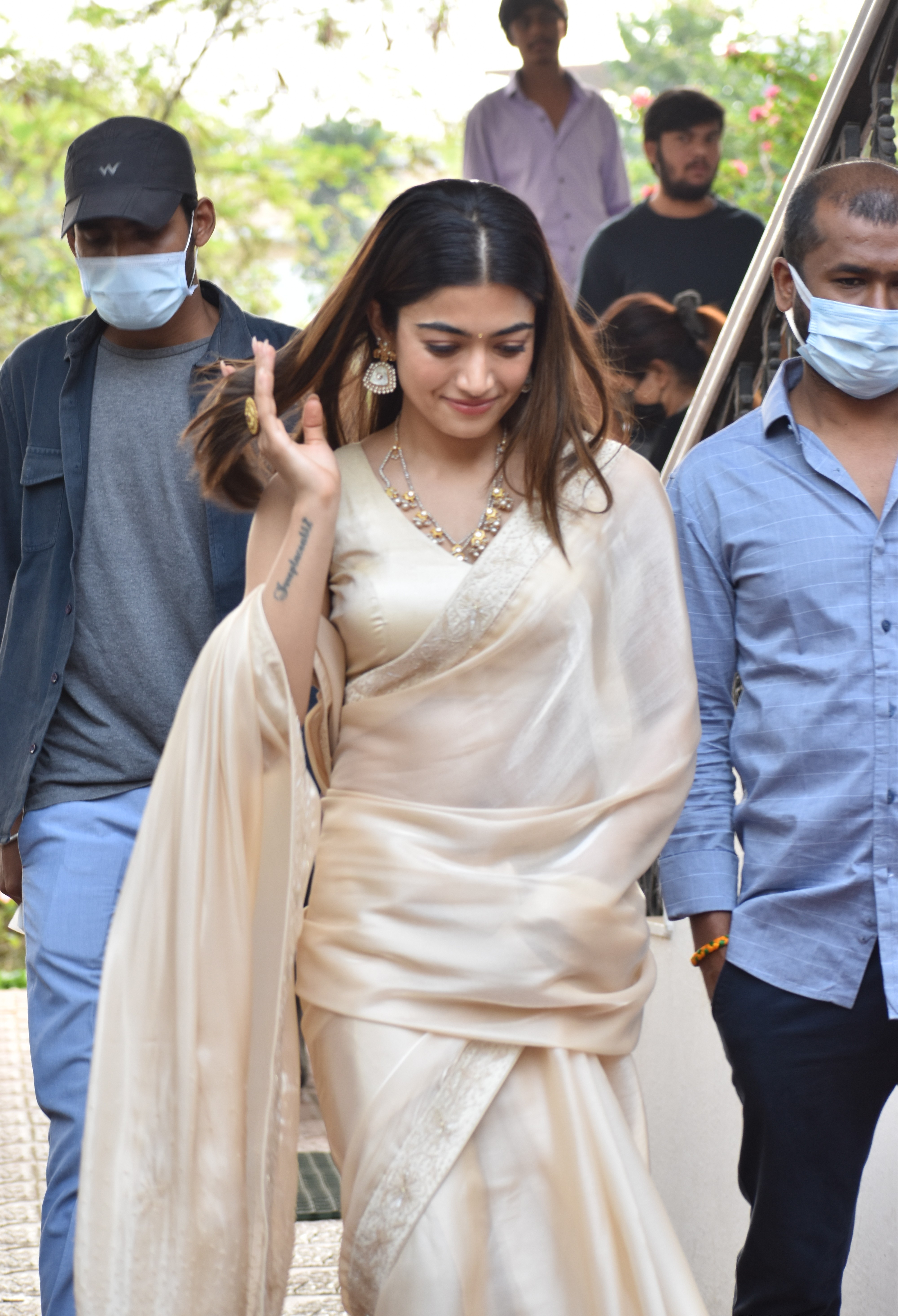 In this basic piece, she maintained her hair straight and free and looked gorgeous. She wears this classic silhouette in the most elegant way conceivable. rashmika Mandanna's clothing game has certainly improved, and we can't wait to see what else she has in her marketing inventory. On december 17, Pushpa: The Rise will be released. The first of two movie portions is based on red sandalwood trafficking and stars Allu Arjun, rashmika mandanna, and Fahadh Faasil in the key roles.