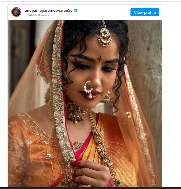 ఈ ఫోటోలో మాత్రం అనుపమ చాలా అందంగా కనిపిస్తుందని కొంతమంది తెలియజేస్తున్నారు. అనుపమ తన పోస్ట్ చేసేటప్పుడు "ఇది మీ అందరికీ తెలిసిన చెస్ లాంటిది.. దీంతో నేను రాజును వశం చేసుకుంటున్నాను అంటూ ఒక పోస్ట్ చేసింది. ఈ హీరోయిన్ షేర్ చేసిన ఈ ఫోటోకి ఏకంగా కొన్ని లక్షలకు పైగా లైకులు వెలువడ్డాయి. అనుపమ కు పెళ్లి చూపులు అంటే మాత్రం తట్టుకోలేక పోతున్నామని కొంతమంది కామెంట్లు చేస్తున్నారు. అనుపమ తను డ్రెస్సింగ్ విషయంలో ఎక్కువగా ట్రెడిషనల్ నే పాటిస్తోంది. అయితే ఇదంతా ఒకప్పుడు ప్రస్తుతం అయితే ఎటువంటి వాటి కైనా ఓకే చెబుతోంది.