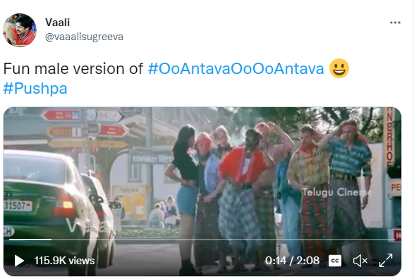 samantha played a special song in 'Pushpa' starring Icon star Allu Arjun. The song "Oo Antawa Oo Oo Antawa" is currently trending on YouTube with over 34 million views. Now the male version of the same song has come out. The visuals and the lyrics of the male version of the song are so funny and witty.