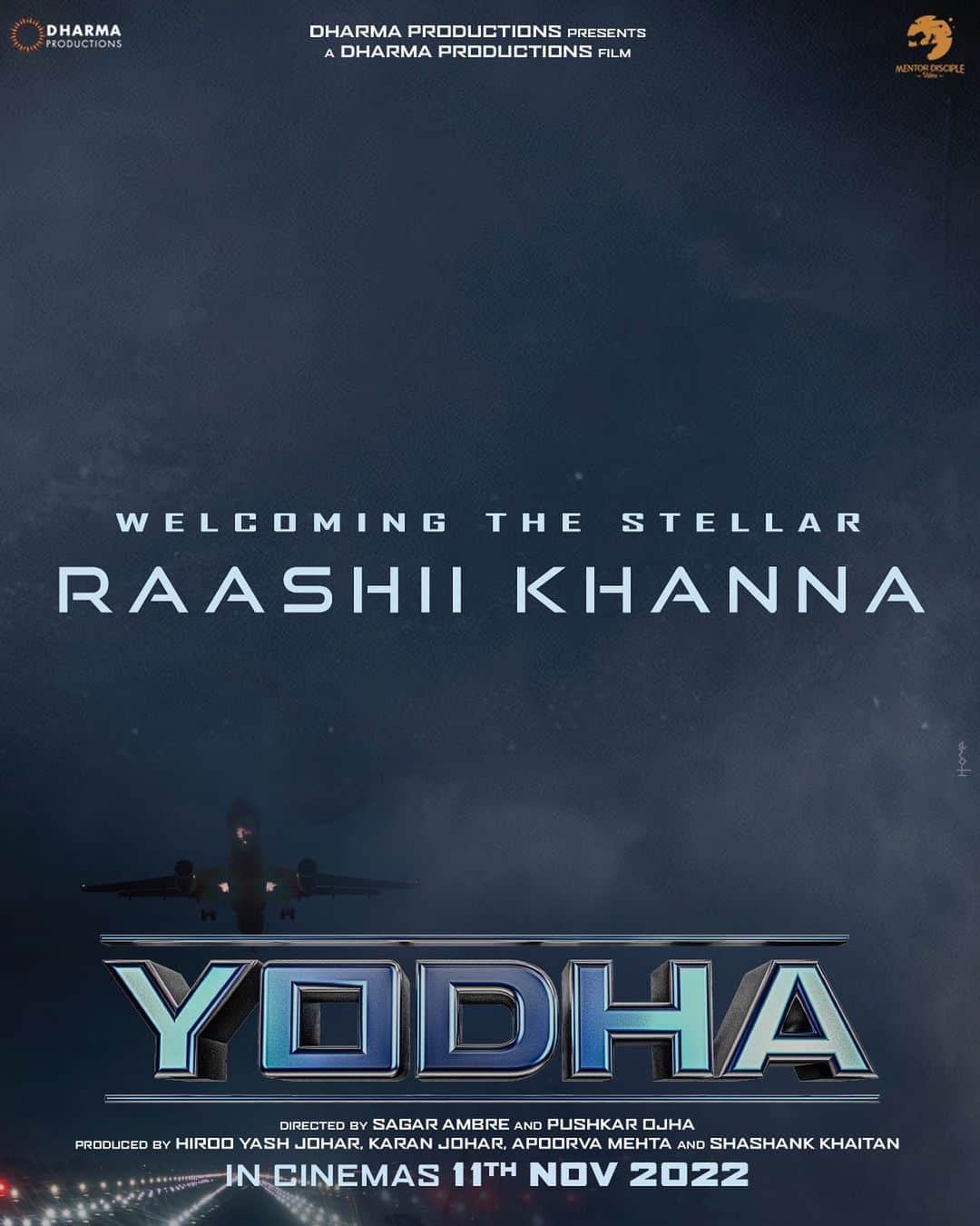 Yodha also stars Siddarth Malhotra and Disha Patani. Sagar Ombre and Pushkar Ojha are composing the music for the movie. karan Johar’s dharma productions is bankrolling the movie. Raashi expressed her elation to be cast in the movie. The movie is expected to release on november 11, 2022.
