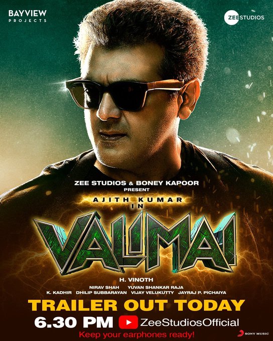 Meanwhile, the 'Valimai Trailer' is trending on twitter even before the video arrives. The trailer will air on sea Studios Official and sony Music South's YouTube channels this evening at 6.30 pm. The film is directed by H Vinod and will be released two and a half years later. ajith kumar will be seen in a police role in the action thriller.