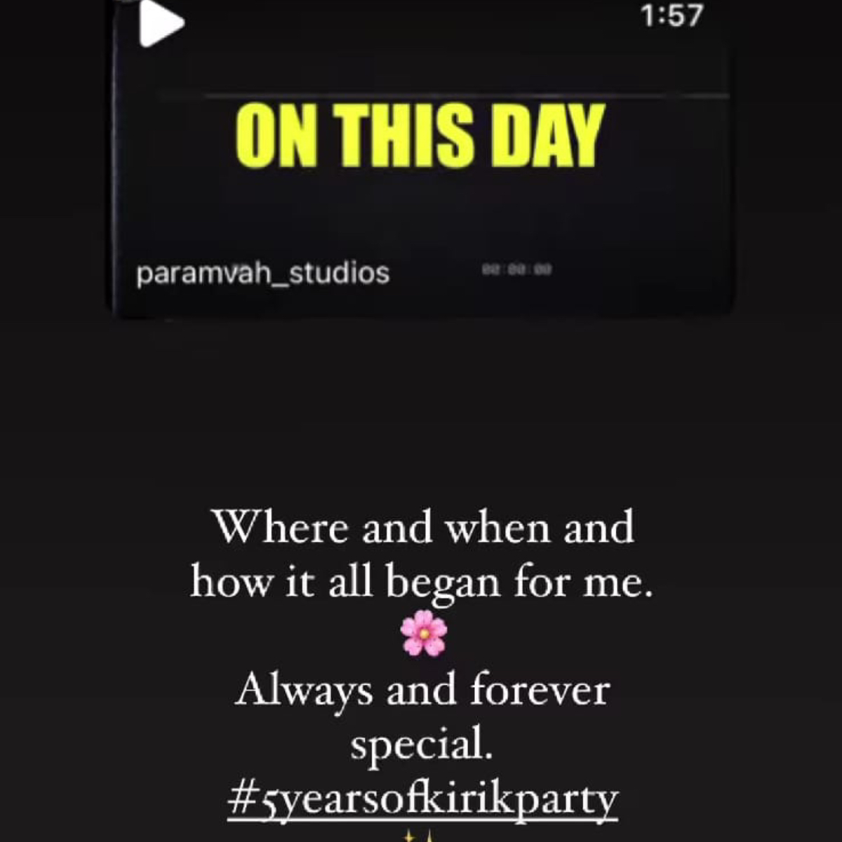 rashmika mandanna, who starred in Pushpa, is commemorating the 5th anniversary of her debut flick Kirki Party. "Where and when and how it all began for me," she commented alongside a nostalgic video on her instagram account. #5yearsofkirikparty" will always and eternally special. In 2016, the actress made her acting debut in the film Kirik Party. The film went on to become one of Kannada's highest-grossing pictures of the year. In fact, her performance was lauded, and she even won an award for her skills.