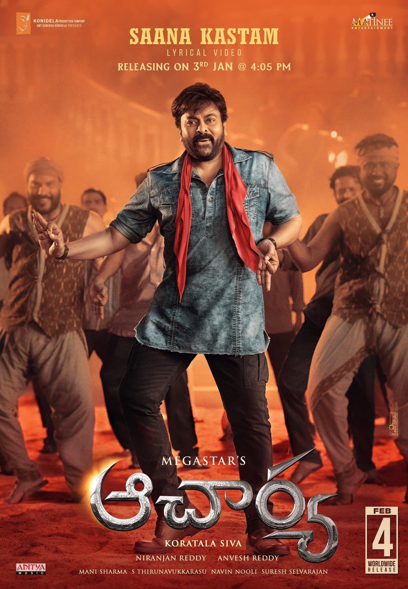 Mega star Chiranjeevi’s acharya movie third single titled ‘Saana Kashtam’ is expected to release on Jan 3, 2022.