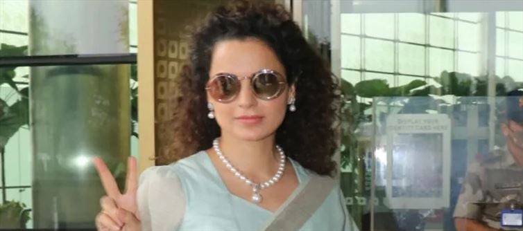 kangana ranaut always manages to attract everyone's attention, whether it's through her speech or her fashion trend. kangana Ranaut's affinity for sarees and traditional dress is well-known. She has frequently stated that she feels most at ease in a saree and loves to wear one even at airports. The queen actress made sure to turn heads at the bombay airport this morning as she walked with confidence and grace and posed for the paparazzi.