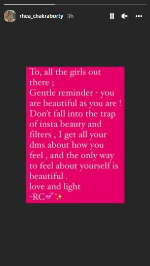 I'm so proud of the lady you've become, and I'll always be here for you. Keep your chin up, babygirl; you've got this. New Year's greetings. Your inner self, I am writing to express my heartfelt gratitude for everything you've done for me." Rhea had a tumultuous 2020 and 2021, when her late boyfriend sushant singh Rajput's father accused her of aiding his son's suicide and misapplying his cash. She was most recently seen in the film 'Chehre.'
