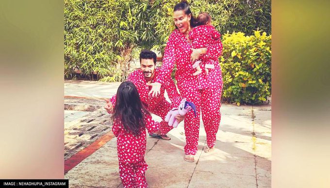 Actress neha dhupia on saturday revealed the name of her son through an instagram post. She shared a picture of herself with her husband, son and daughter in which she revealed the name of the newborn baby for the first time.