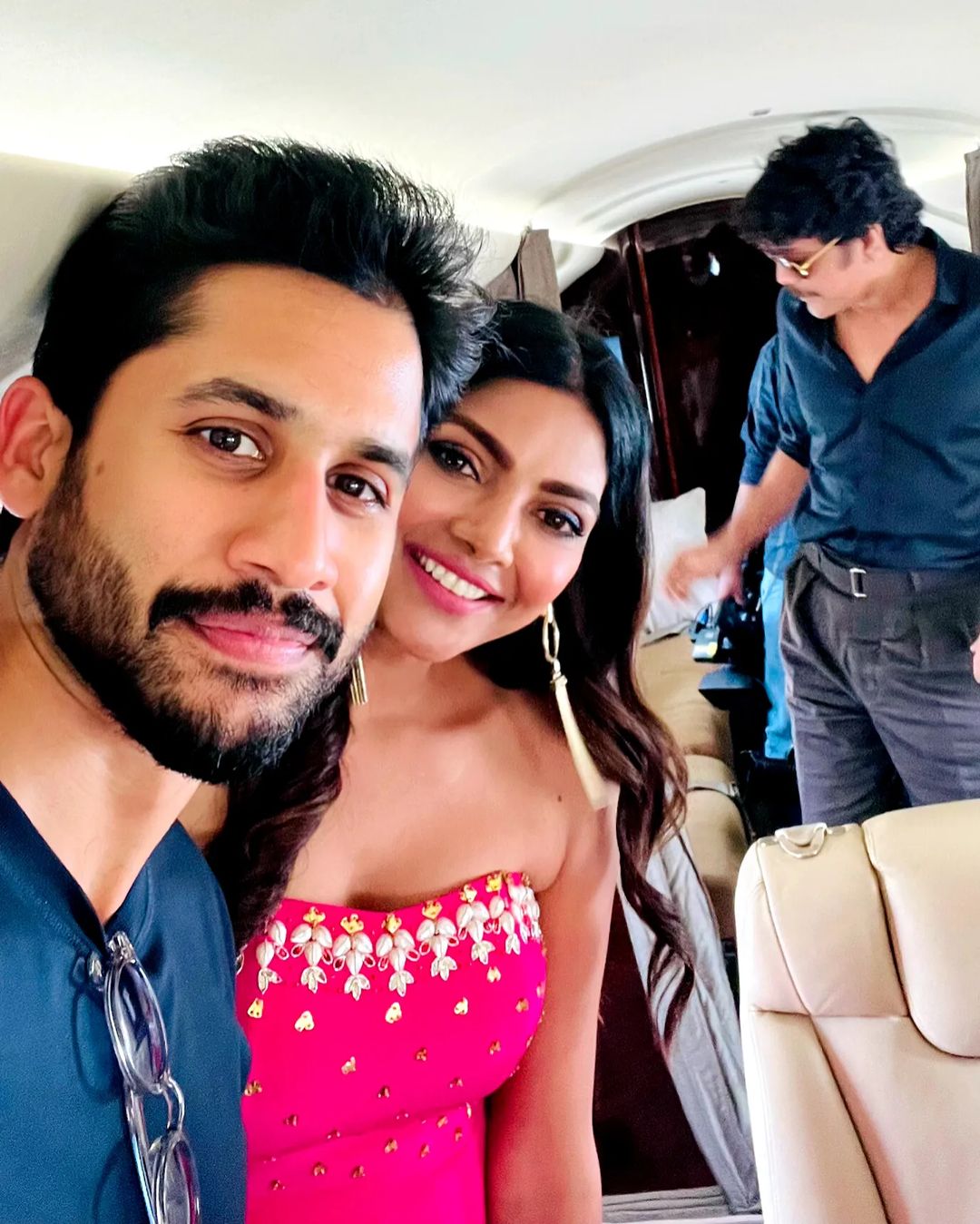 Lahari Shari also uploaded a photo with naga chaitanya and Nagarjuna. The daddy and son were seen twinning in blue in this newest photo, while lahari Shari dazzled in pink. These three appear to have spent some quality time on a flight. The actress regularly posts stunning photos to her instagram account. She even keeps her followers up to date on her professional life.