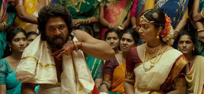 Pushpa Raj is shown as an action hero but he falls in love with a girl named rashmika mandanna i.e. Srivalli. After this, the love angle between the two is shown.