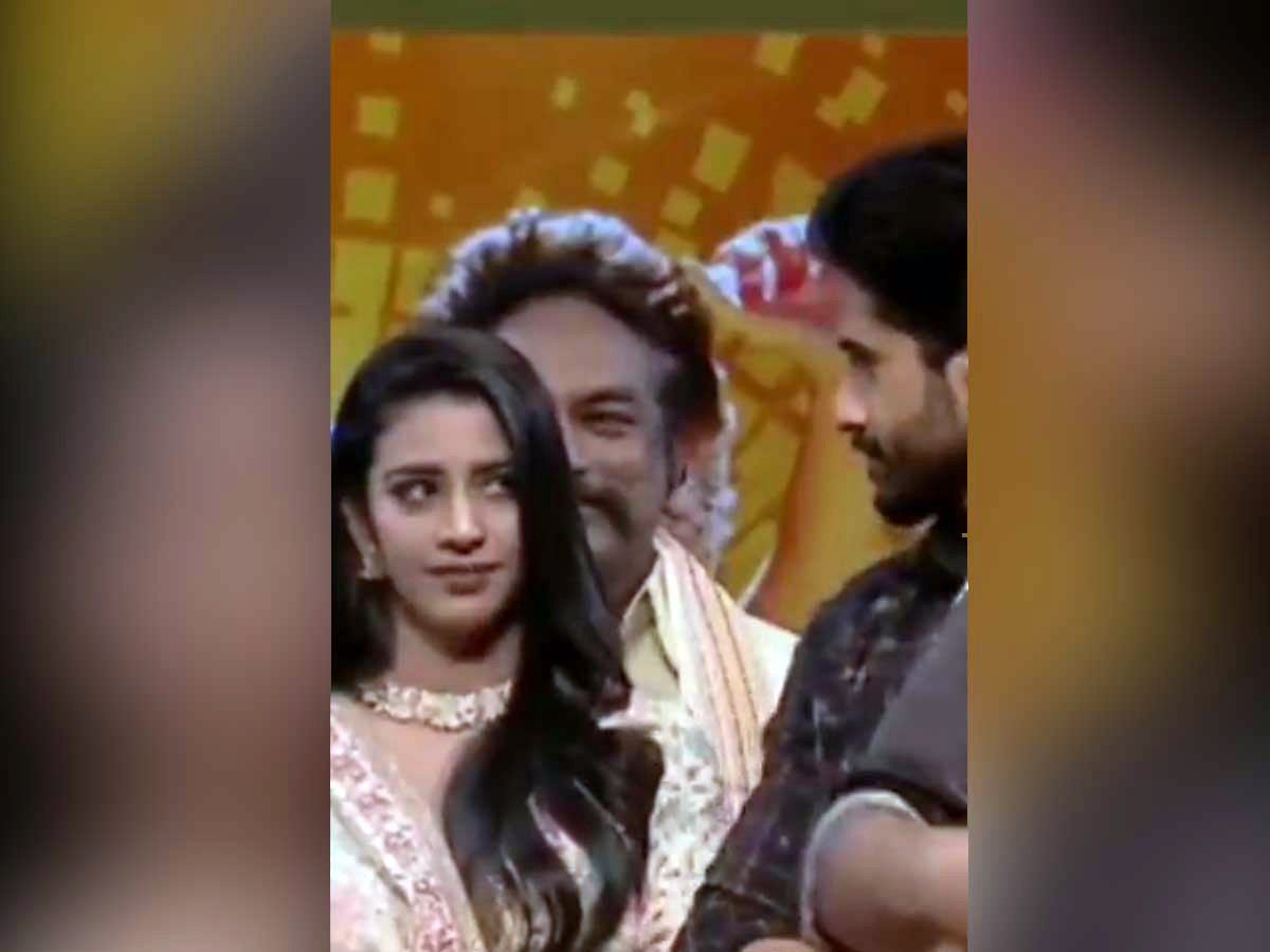 Naga Chaitanya's intriguing performance on the Bangarraju festival stage is not to be missed since it is truly captivating. Chaitu was caught red-handed on the stage making his movie co-star daksha Nagarkar smile cheekily. The Bangarraju actor has a smart appearance and a naughty smirk on his face, which makes actress daksha blush at once.