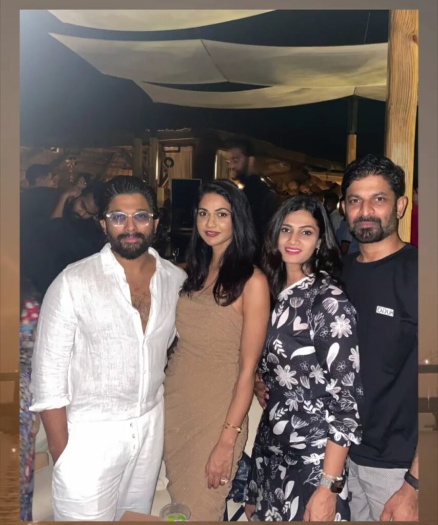 Stylish Celebrity allu arjun and his family arrived to telangana a few days earlier after spending the holidays in Goa. sneha Reddy, his spouse, has been sharing pieces from their trip on social media, and the most recent video shows allu arjun smiling with pals in Goa. A trip to goa is always a perfect party zone, and vacationing with friends is the icing on the cake.