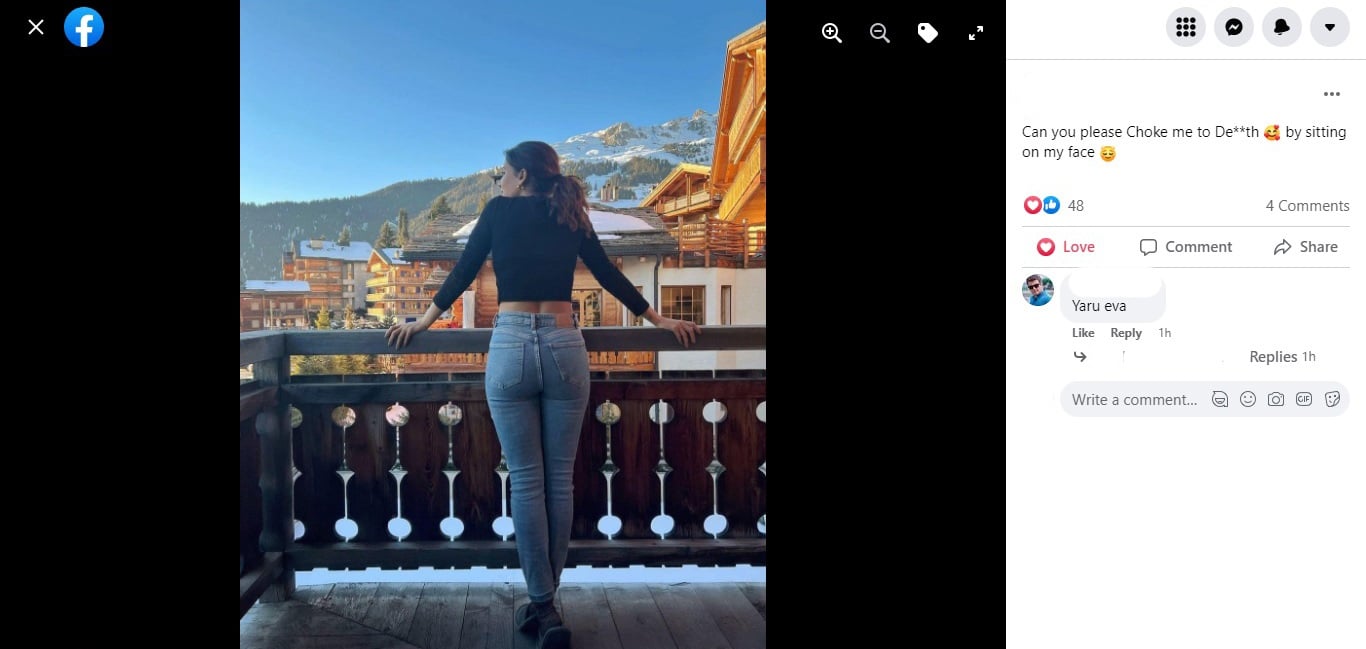 She captioned the cheerful photo, "Day 4 is when the magic happens #skiingainteasybutitsureisfun." "The super leading player you are - you go compete in some tournament and come back with a gold medal," singer Chinmayi Sripada mocked Samantha. "@chinmayisripaada rofl... I recently traversed baby slopes," samantha answered. On the other hand, the back side photo got some nasty vulgar comments on samantha as you can notice on the above image.