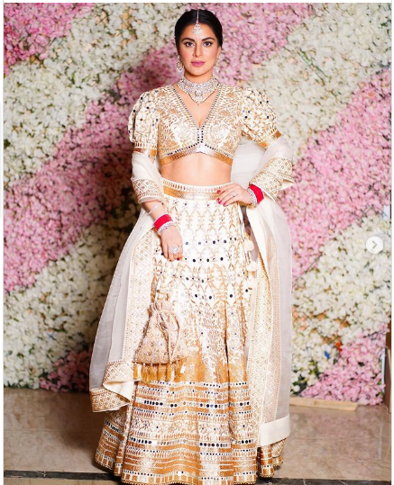Shraddha arya is seen in a lehenga in the photos that have circulated. Shraddha is wearing a stunning beige-colored lehenga with a puff-sleeved blouse in the photos.