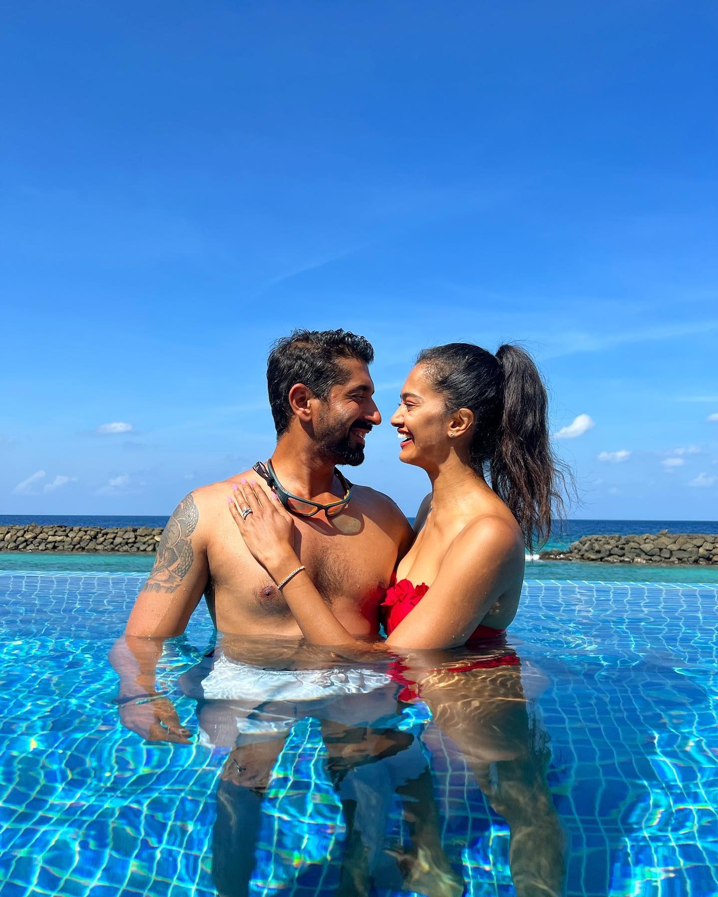 I only knew I was heading to the maldives for a vacation. I only knew we'd made a fancy meal. Luckily, I was dressed in my favourite attire. He had set up a canopy and lights on a private beach, and he got down on one knee and begged me if I would marry him. It was well done, and it was a touching experience for the both of us."