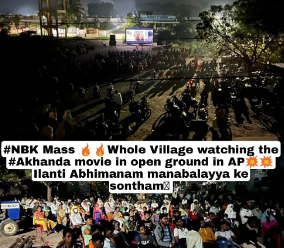 Recently, the whole village people of guntur have watched the movie 'Akhanda' on the open ground. ‘Akhanda’ has been a huge success and blockbuster in the telugu states as well as abroad and has garnered top collections. Many days later akhanda was the only film that could celebrate 50 days celebrations amidst corona.