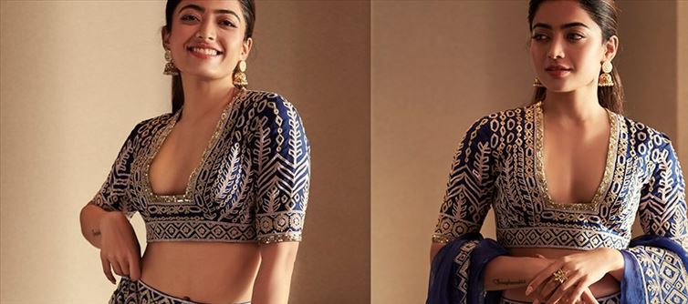 Rashmika looked stunning in the costume, which was particularly well made by ace designer manish Malhotra. Her shirt has a U cut that shows off her gorgeous assets just a little. She wore very little makeup because of her loose hair. "Trying to pose like," the actress wrote, referring to her amazing appearance. She has just made the day hotter by flaunting her low blouse cleavage and temptingd us further.