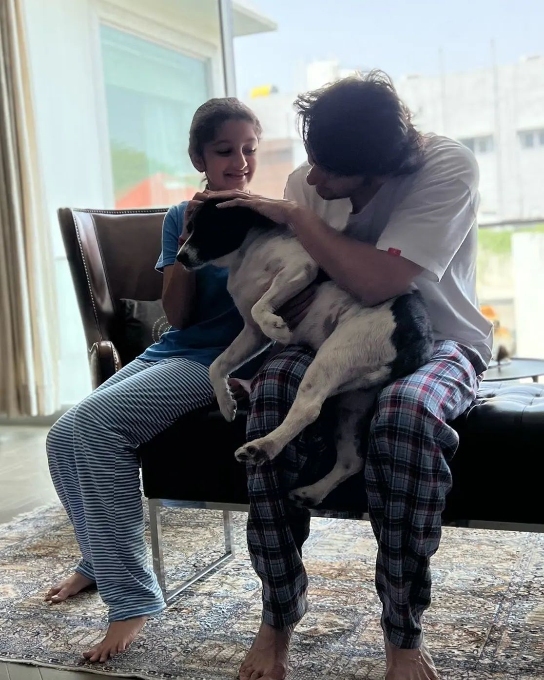 After recuperating from COVID-19, mahesh babu has rejoined with his folks and is enjoying time with them. The performer's spouse namrata shared a photo of his sunday early dawn with his child Sitara, and it's all about lovings from his family pet. He's having such a great time, and all we can say is how precious he is. namrata has once again assumed the position of cinematographer, recording the priceless event and continuing to share it on her instagram profile.
