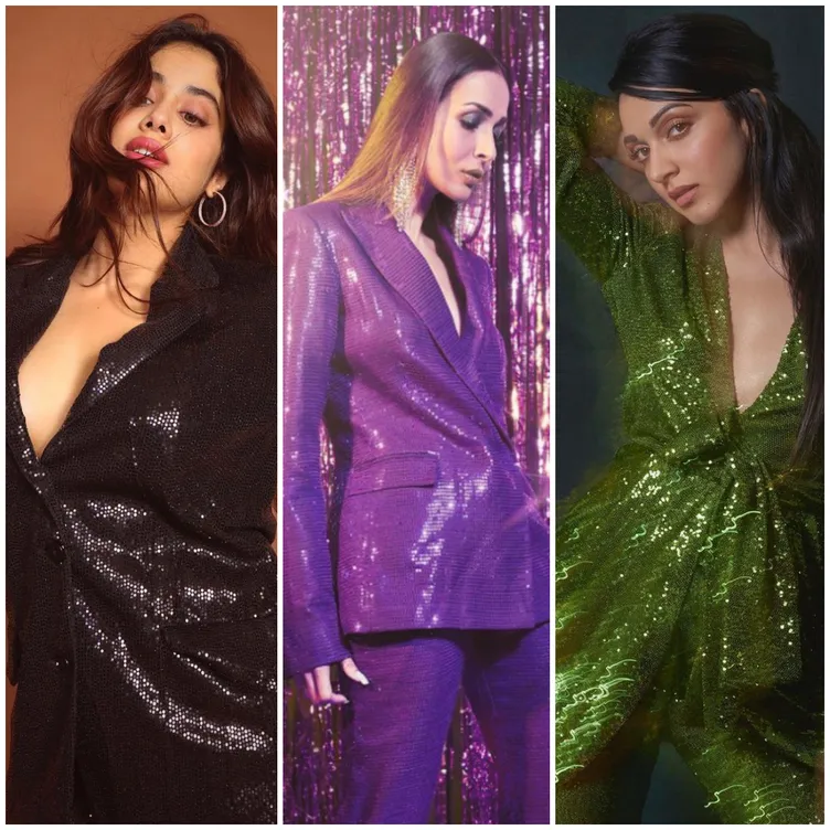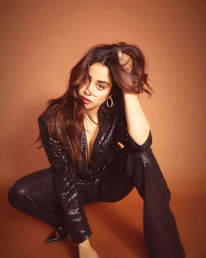 Wear black when in doubt, and let janhvi kapoor teach you how! The Good Luck Jerry actress wore a sequined all-black Zara ensemble with lapels that looked disguised in the same colour and sequins set incredibly close together. Her hair was left open with beautiful curls, and her cosmetics was kept glamorous to complement her pantsuit outfit. To round off her appearance, Janhvi added gold hoop and earrings to her ensemble.