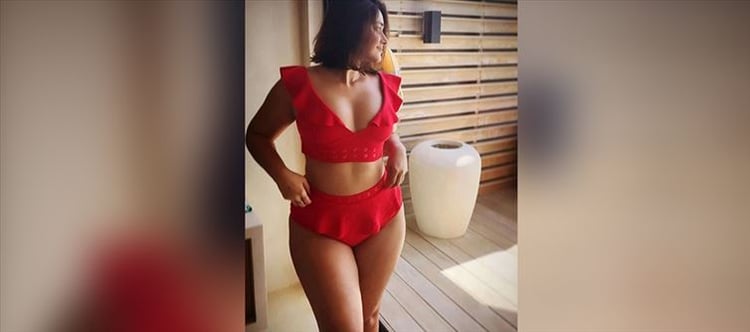 On her instagram account, the actress posted a photo of herself in red swimsuit. She later uploaded the same photo on her instagram post with the caption: "It's so easy to be pulled into applications that allow you to easily alter your body to make yourself look "skinnier," "more toned," and so on... I'm happy about the fact that I ditched all of those apps in favour of this. This is me, and I'm loving every curve of my body."