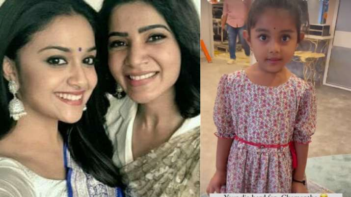 The actress from Good Luck Sakhi released a video on her instagram account in which she presented samantha to her small admirer. In the clip, Keerthy asks the small girl what she wants to be when she grows up, and the answer is 'Samantha.' The small girl went on to state that she is a huge samantha fan, and the actress appears to be in awe of her as well. Keerthy remarked in response to the video, "Samantha, I'm a die-hard admirer of yours. sam, you have to visit her at least once." samantha quickly responded to the video, asking, "Who is this cutie?"