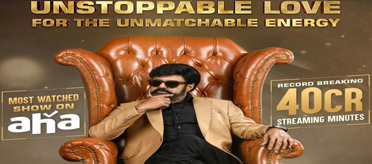 నందమూరి బాలకృష్ణ ఇటీవల తాజాగా హోస్ట్ చేసిన 'అన్‌స్టాపబుల్' షో రికార్డులన్నీ బద్దలు కొడుతూ 'అన్‌స్టాపబుల్'గా దూసుకెళ్తోంది.  దూసుకెళ్లడమే కాకుండా పలువురు సెలెబ్రిటీలు పాల్గొన్న పాపులర్ టాక్ షో 'అన్‌స్టాపబుల్ విత్ ఎన్బీకే' ఇప్పటికే ఐఎండీబీలో మంచి రేటింగ్ ను సొంతం చేసుకుంది. అయితే ప్రస్తుతం ఓటిటి ప్లాట్‌ఫామ్‌లో అత్యధికంగా వీక్షించిన షోగా నిలిచి ఆహా అన్పిస్తోంది.  ఇక ఇటీవల ఈ షో టీం ఎంతో మంది టాలీవుడ్ సెలబ్రిటీలకు రెడ్ కార్పెట్ పరిచిన ఈ యూనిక్ టాక్ షో 40 కోట్ల నిమిషాలకు పైగా ప్రసారమై రికార్డు సృష్టించిందని అధికారికంగా ప్రకటించారు.
