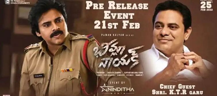 తెలంగాణ ఐటీ ఇంకా మున్సిపల్‌ శాఖ మంత్రి అయిన కేటీఆర్‌(KTR) ఈ ఈవెంట్ కి చీఫ్ గెస్ట్ గా హాజరు కాబోతున్నట్టు వెల్లడించింది. `భీమ్లా నాయక్‌` సినిమాకి మాటలు ఇంకా స్క్రీన్‌ ప్లే అందించిన దర్శకుడు త్రివిక్రమ్‌ ఇంకా అలాగే చిత్ర నిర్మాత ఎస్‌.రాధాకృష్ణ(చినబాబు) కలిసి మంత్రి కేటీఆర్‌ని శనివారం మధ్యాహ్నం కలిశారు. ఆయన్ని మర్యాద పూర్వకంగా కలిసి `భీమ్లా నాయక్‌` సినిమా ఈవెంట్‌కి గెస్ట్ గా రావాలని కోరగా, ఆయన వెంటనే ఈవెంట్ కి గ్రీన్‌ సిగ్నల్‌ ఇవ్వడం విశేషం.కేటీఆర్‌ గెస్ట్ గా వస్తున్నారనే వార్తతో `భీమ్లానాయక్‌`సినిమాకి హైప్‌ అనేది మరింతగా పెరుగుతుందనే చెప్పాలి. అయితే పవర్ స్టార్ పవన్‌ కళ్యాణ్‌ సినిమాలకు ప్రత్యేకమైన గెస్ట్ లు అవసరం లేదు. ఆయన కోసమే ఆయన అభిమానులు వెయిట్‌ చేస్తుంటారు. ఎప్పుడైనా అవసరమైతే ఆయన అన్నయ్య చిరంజీవిని గెస్ట్ గా పిలుస్తుంటారు. కానీ ఈ సారి మాత్రం ఓ రాజకీయ నాయకుడిని గెస్ట్ గా పిలవడం అనేది ఇప్పుడు ఆసక్తికరంగా మారింది. అదే సమయంలో ఈ వార్త ఇప్పుడు హాట్‌ టాపిక్‌గానూ మారుతుంది.