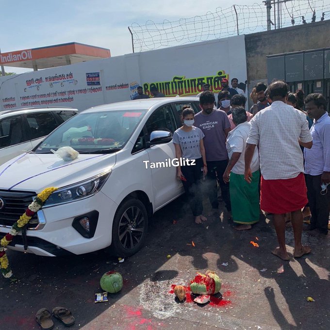 A photo taken while they were praying for the car has been released. They have just bought a new Innova car and have gone to the Badi Guard Muneeswaran temple as a couple to pray for a better future and the Photos taken at the time standing in front of the car have gone viral on social media.