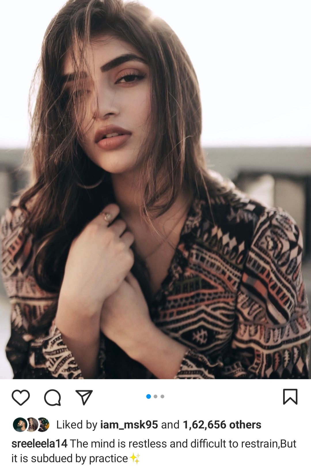 ఇలా మొదటి సినిమాలో తన అందంతో,  నటనతో,  హవాభావాలతో ఎంతో మంది తెలుగు ప్రేక్షకుల మనసు దోచుకున్న హాట్ బ్యూటీ శ్రీ లీల,  సూపర్ స్టార్ మహేష్ బాబు సరసన నటించే అవకాశం దక్కించుకుంది అంటూ అప్పట్లో కొన్ని వార్తలు కూడా వచ్చాయి,  ఇది ఇలా ఉంటే ప్రస్తుతం హాట్ బ్యూటీ  శ్రీ లీల,  రవితేజ హీరోగా తెరకెక్కుతున్న ధమాకా సినిమాలో హీరోయిన్ గా నటిస్తోంది.  ఇలా సినిమాలతో ఎంతో మంతో ప్రేక్షకుల అభిమానాన్ని సంపాదించుకున్న శ్రీ లీల సోషల్ మీడియాలో కూడా ఫుల్ యాక్టివ్ గా ఉంటూ తన ఫాలో వర్స్  తో అనేక విషయాలను పంచుకుంటూ ఉంటుంది,  ఇది ఇలా ఉంటే శ్రీ లీల సోషల్ మీడియా వేదికగా తాజాగా చేసిన పోస్ట్ నెట్టింట్లో తెగ వైరల్ అవుతుంది,  శ్రీ లీల తాజా పోస్టు లో  మనసు చంచలమైనది...దానిని నియంత్రించడం చాలా కష్టం , కానీ నిరంతరం నేర్చుకోవడం వల్ల మనస్సు ను నియంత్రించుకోవచ్చు,  అంటూ రాసుకొచ్చింది, తాజాగా శ్రీ లీల సోషల్ మీడియాలో చేసిన ఈ పోస్ట్ నెట్టింట్లో తెగ వైరల్ అవుతుంది.