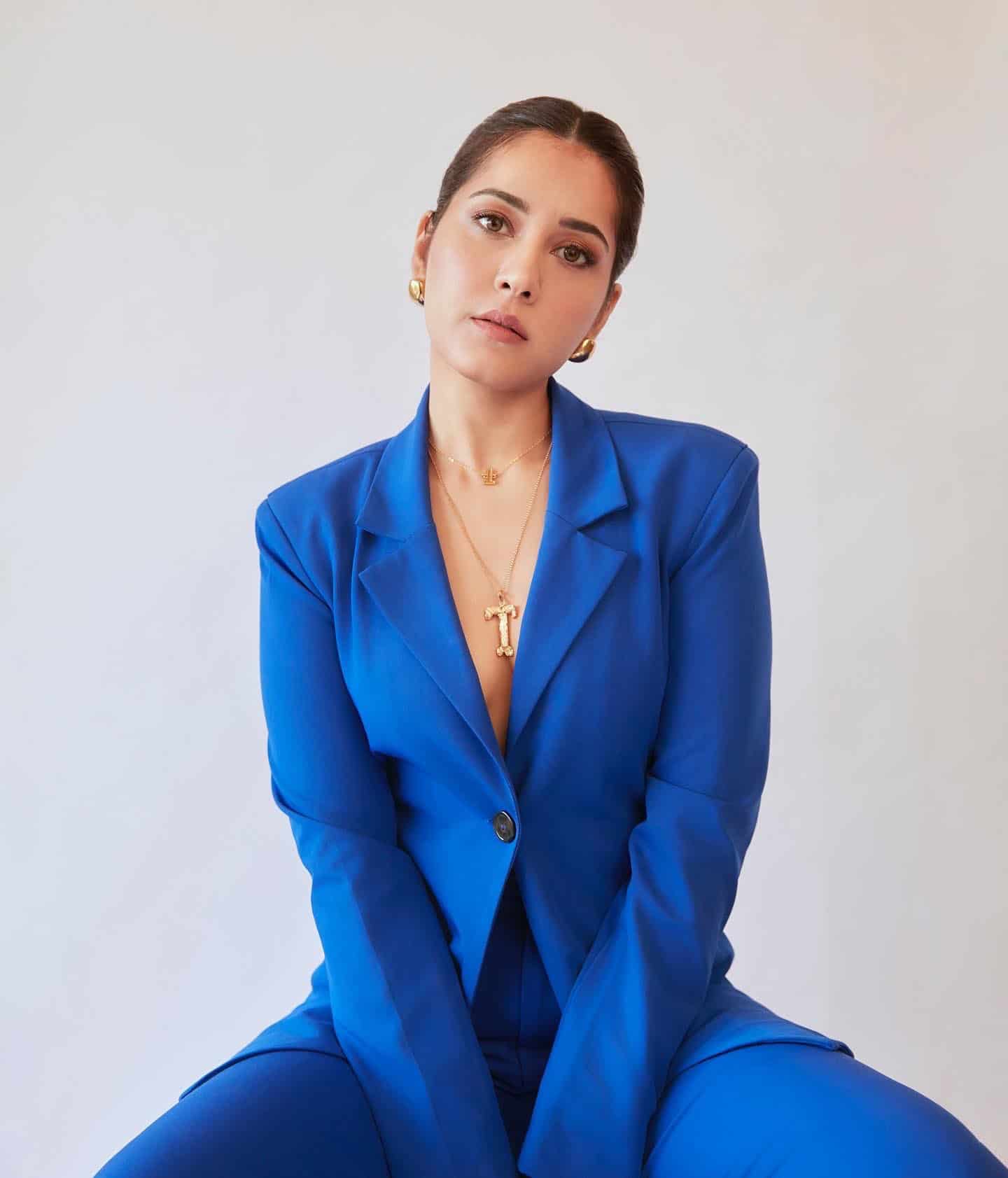 "Tod Fod," as Raashii accompanied the photo, is the subject of her Rudraa's sixth episode. Her hair is styled in a bun, and her makeup is flawless. Raashi shows us how to steal the spotlight while being sophisticated. Isn't this monochrome outfit ideal for this time of year? The actress done a negative role for the first time in her career with the web series and now she looks to do such out of the box kinda roles.