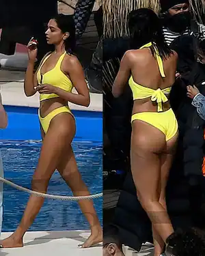 బాలీవుడ్ బ్యూటీ దీపికా పడుకొనే ఈ మధ్యకాలంలో ఎక్కువగా బోల్డు కంటెంట్ ఉన్న సినిమాలను ఎంపిక చేసుకొని నటిస్తోంది. ఇక ఇమే స్క్రీన్ మీద అయినా ఆన్ స్క్రీన్ లో అయినా తన అందాలతో ఎలివేషన్ చేస్తూ ఓ రేంజ్ లో ఆకట్టుకుంటోంది. వివాహమైనప్పటికీ కూడా మరొక సారి బికినీలో కుర్ర కారులకు చెమటలు పట్టించే లా హాట్ ఫోటోలతో తెగ వైరల్ గా మారుతుంది. ప్రస్తుతం బ్లాక్ ప్రింటెడ్ బికినీలో నడుస్తున్న ఫోటోతో కుర్రకారు లకు నిద్ర లేకుండా చేస్తోంది దీపికాపదుకునే.ఇక అలా తన స్విమ్మింగ్  ముగించుకొని బయటకు వస్తున్న సమయంలో ఈ ఫోటో బయట పడినట్లుగా కనిపిస్తోంది. దీంతో ఈమె అభిమానులు కూడా కామెంట్లు చేస్తున్నారు. ఇంతకీ ఈ ఫోటో వివరాలను పూర్తిగా తెలుసుకుందాం. ప్రస్తుతం దీపికా పడుకొనే షారుక్ ఖాన్.. జాన్ అబ్రహం ముఖ్యమైన పాత్రలో తెరకెక్కిస్తున్న చిత్రం పఠాన్. ఈ చిత్రానికి సంబంధించి షూటింగ్ ప్రస్తుతం స్పెయిన్ లో జరుగుతున్నది. ఇటీవల దీపికా పడుకొని తాజాగా తన చివరి షెడ్యూల్ షూటింగ్ కోసం స్పెయిన్ కి వెళ్ళినట్లుగా తెలుస్తోంది. అందుకోసం అక్కడ ఆమెకు అన్ని సౌకర్యాలను సిద్ధం చేశారట.ఇక ఆమె ఉండే హౌస్ లో స్విమ్మింగ్ పూల్ తో పాటు పలు రకాల వసతులు కూడా ఇచ్చినట్లు తెలుస్తోంది. అలా స్విమ్మింగ్ పూల్ లో ఈమె స్విమ్మింగ్ చేస్తున్నప్పుడు ఈ ఫోటోలు బయటికి వచ్చాయి. ఇక అదే స్పాట్ లో షారుక్ ఖాన్ సంబంధించి కూడా కొన్ని ఫోటోలు లీక్ అయినట్లుగా తెలుస్తోంది. దీపికా పడుకొనే తెలుగులో ప్రాజెక్ట్ -k చిత్రం తో మొదటిసారిగా పరిచయం అవుతోంది. ఇందులో ప్రభాస్ సరసన నటించబోతున్నట్లు గా సమాచారం. ఇందులో దీపిక అమితాబ్ బచ్చన్ కూడా ఇద్దరు కీలక పాత్రలో నటిస్తున్నట్లుగా సమాచారం. ఈ చిత్రం కోసం దీపిక భారీ రెమ్యూనరేషన్ అందుకున్నట్లు గా తెలుస్తోంది.