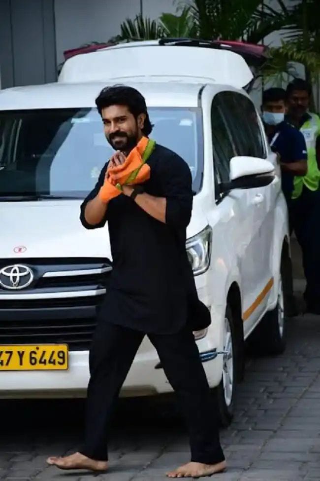 ముంబైలో ల్యాండ్ అవ్వగానే కారు దిగి నలుపు దుస్తుల్లో ఆయన కనిపించారు. ఆయన కాళ్లకి చెప్పులు లేకుండా నేలపై నడవడాన్ని గమనించవచ్చు. అలాగే చేతికి నలుపు రంగు వాచ్ ని ఆయన ధరించారు. ఈ ఏడాదితో రామ్ చరణ్ గురుస్వామి అయినట్లు తెలుస్తోంది.అలాగే భుజాన గురుస్వామి కండువా ధరించారు. దీంతో రామ్ చరణ్ గురు స్వామిగా ప్రమోట్ అయినట్లు తెలుస్తోంది. రామ్ చరణ్ ప్రతీ ఏడాది అయ్యప్ప మాల ధరిస్తుంటారు. 41 రోజుల పాటు భక్తి శ్రద్దలతో ఇంకా అలాగే నియమ నిష్టలతో ఆధ్యాత్మిక చింతనలో ఉంటారు. అలా అయ్యప్పతో రామ్ చరణ్ కి ప్రత్యేకమైన బంధం ఏర్పడింది.ఇక సినిమా షూటింగ్ లతో ఎంత బిజీగా ఉన్నా కాని ఏడాదిలో 40 రోజులు అయ్యప్ప భక్తి కోసం కేటాయించడం విశేషం. ఈ అలవాటు రామ్ చరణ్ కి తండ్రి చిరంజీవి నుంచి వచ్చిందని చెప్పాలి. మెగాస్టార్ చిరంజీవి కూడా వీలు కుదిరిప్పుడల్లా అయ్యప్ప మాల ధరిస్తారు. తండ్రి కారణంగానే రామ్ చరణ్ కి అయ్యప్ప మాల ధరించడం అలవాటైంది. ఇక ఈ 40 రోజుల పాటు రామ్ చరణ్ ఎలాంటి సినిమా షూటింగ్ ల్లో పాల్గొనే అవకాశం లేదని సమాచారం తెలుస్తోంది.
