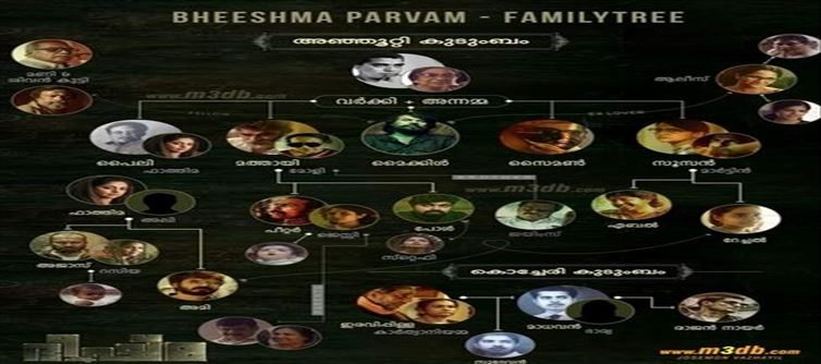 ഭീഷ്മപർവ്വം' അഞ്ഞൂറ്റി കുടുംബം ഫാമിലി ട്രീ വൈറൽ! തീയേറ്റർ റിലീസിന് പിന്നാലെ ചിത്രം ഡിസ്നി ഹോട്സ്റ്റാറിലൂടെ ഒടിടി റിലീസും ആയിരിക്കുകയാണ്. ഭീഷ്മപർവ്വം സിനിമയിലെ അഞ്ഞൂറ്റി കുടുബത്തിൻറെ ഫാമിലി ട്രീ സോഷ്യൽമീഡിയയിലൂടെ പങ്കുവെച്ചിരിക്കുകയാണ് ഇപ്പോൾ ക്രിയേറ്റീവ് ഡിസൈനറായ ജോസ്മോൻ വാഴയിൽ. അടുത്തിടെ തീയേറ്ററുകളിലെത്തി മികച്ച വിജയം നേടിയ മമ്മൂട്ടി - അമൽ നീരദ് കൂട്ടുകെട്ടിലൊരുങ്ങിയ ചിത്രമാണ് ഭീഷ്മപർവ്വം. മൈക്കിളപ്പനും അമ്മൂമ്മയും ഉൾപ്പെടെയുള്ളവരുള്ള അഞ്ഞൂറ്റി കൂട്ടുകുടംബത്തിൻറെ ഘടനയെങ്ങനെയെന്ന് സിനിമ കണ്ട ചിലർക്കെങ്കിലും സംശയം ഉണ്ടായിരുന്നു.