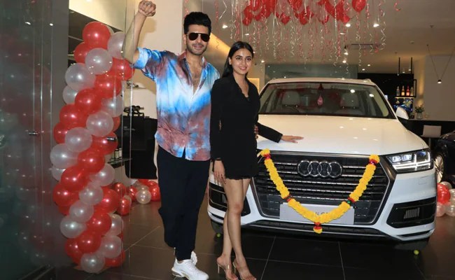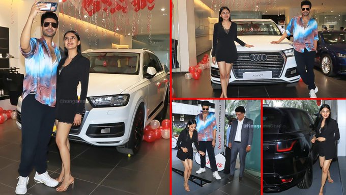 The photo with Tejashwi and karan Kundra's car is going viral on social media. Tejasswi and karan were also seen taking selfies with the new car.