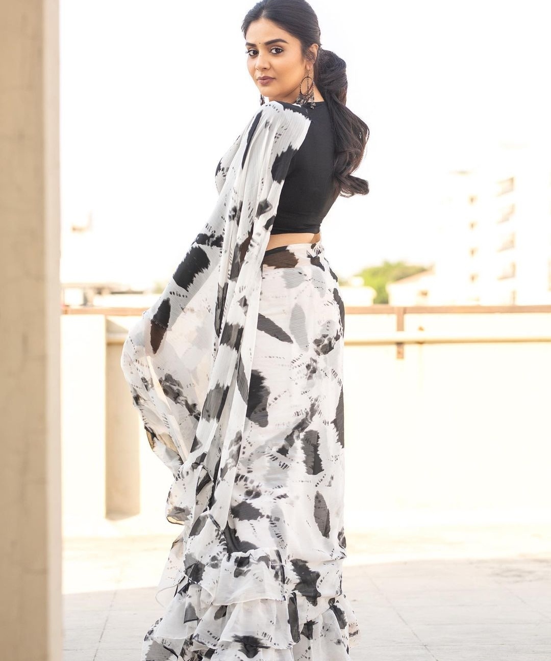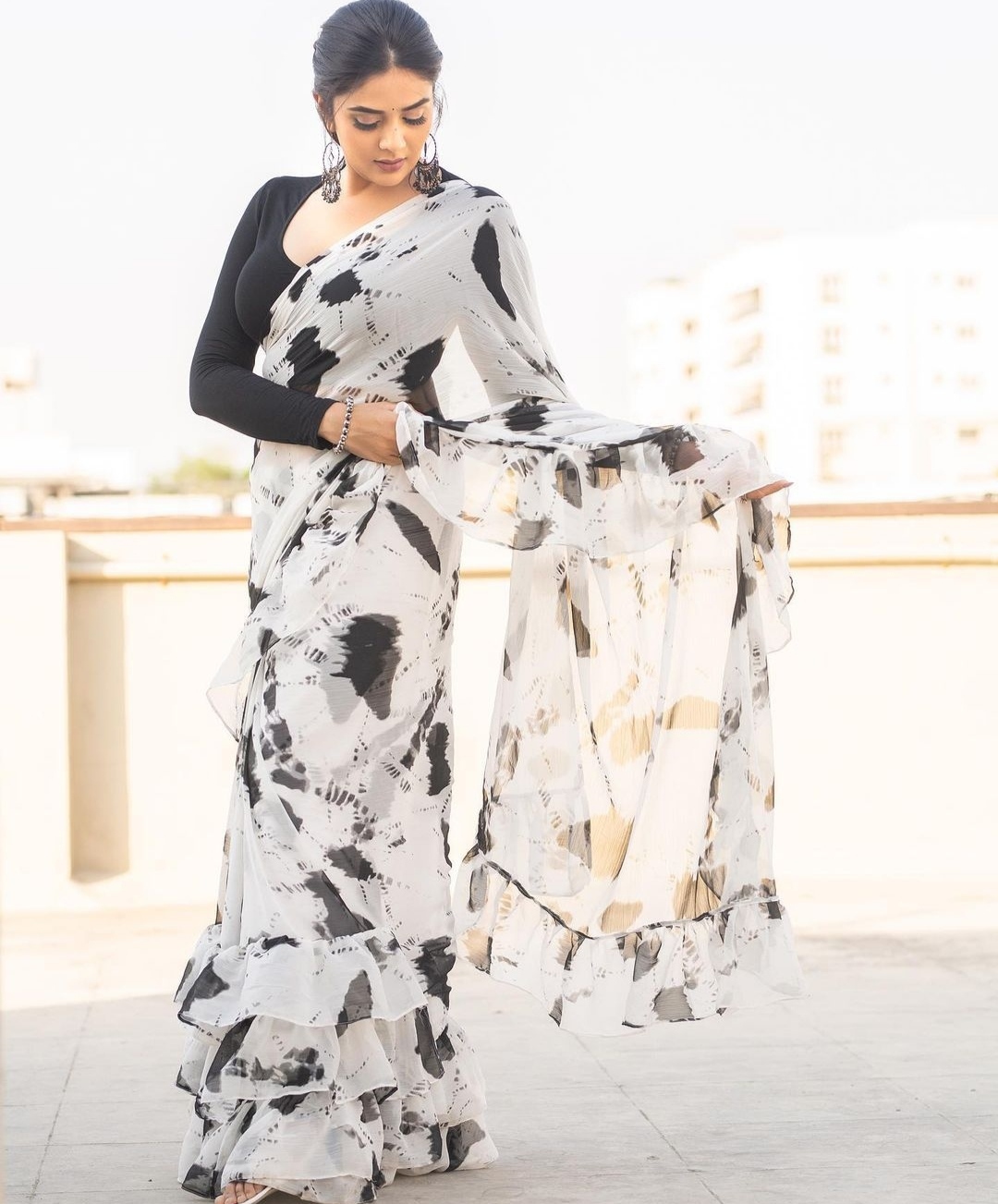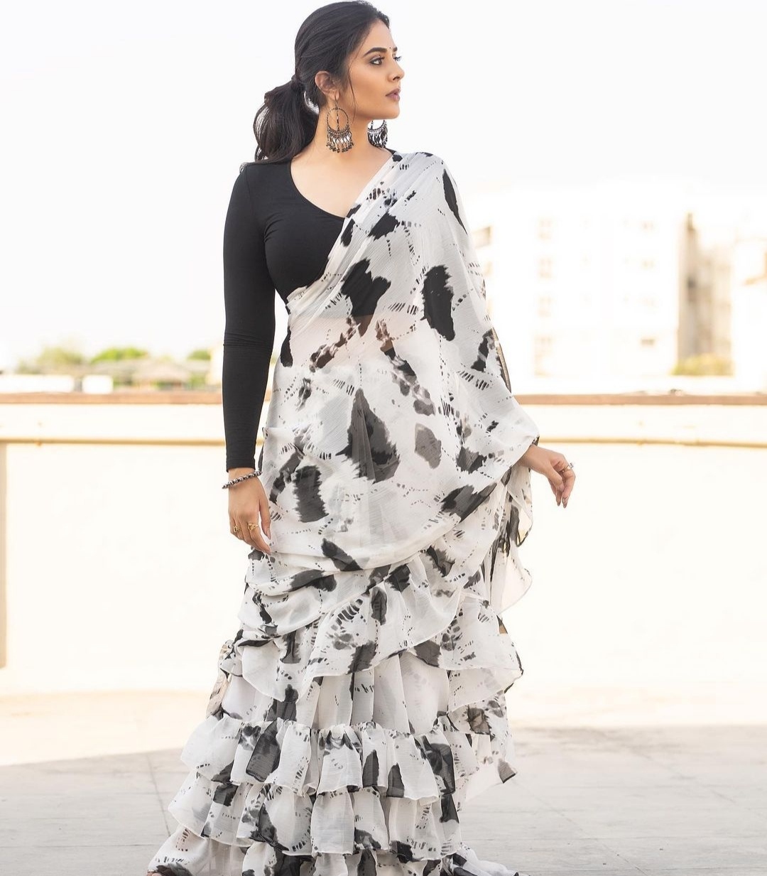 ఇది ఇలా ఉంటే శ్రీముఖి అప్పుడప్పుడు సోషల్ మీడియాలో తన హాట్ హాట్ అందాలతో కూడిన ఫోటోలను కూడా పోస్ట్ చేస్తూ ఉంటుంది,  ఇది ఇలా ఉంటే తాజాగా శ్రీముఖి తన ఇన్ స్టా లో కొన్ని ఫోటోలను పోస్ట్ చేసింది,  ఈ ఫోటోలలో యాంకర్ శ్రీముఖి వైట్ అండ్ బ్లాక్ కాంబినేషన్ లో ఉన్న సారీ కట్టుకొని బ్లాక్ కలర్ లో ఉన్న బ్లౌజ్ ను  ధరించి డిఫరెంట్ డిఫరెంట్ యాంగిల్స్ లో ఫోటోలకు స్టిల్స్ ఇచ్చింది,  యాంకర్ శ్రీముఖి సంబంధించిన ఈ ఫోటోలను చూసిన కొంత మంది నెటిజన్లు లూకింగ్ బ్యూటిఫుల్ , వావ్ సో గార్జియస్ , లవ్ సింబల్ ఎమోజి లను కామెంట్లు గా పెడుతున్నారు.