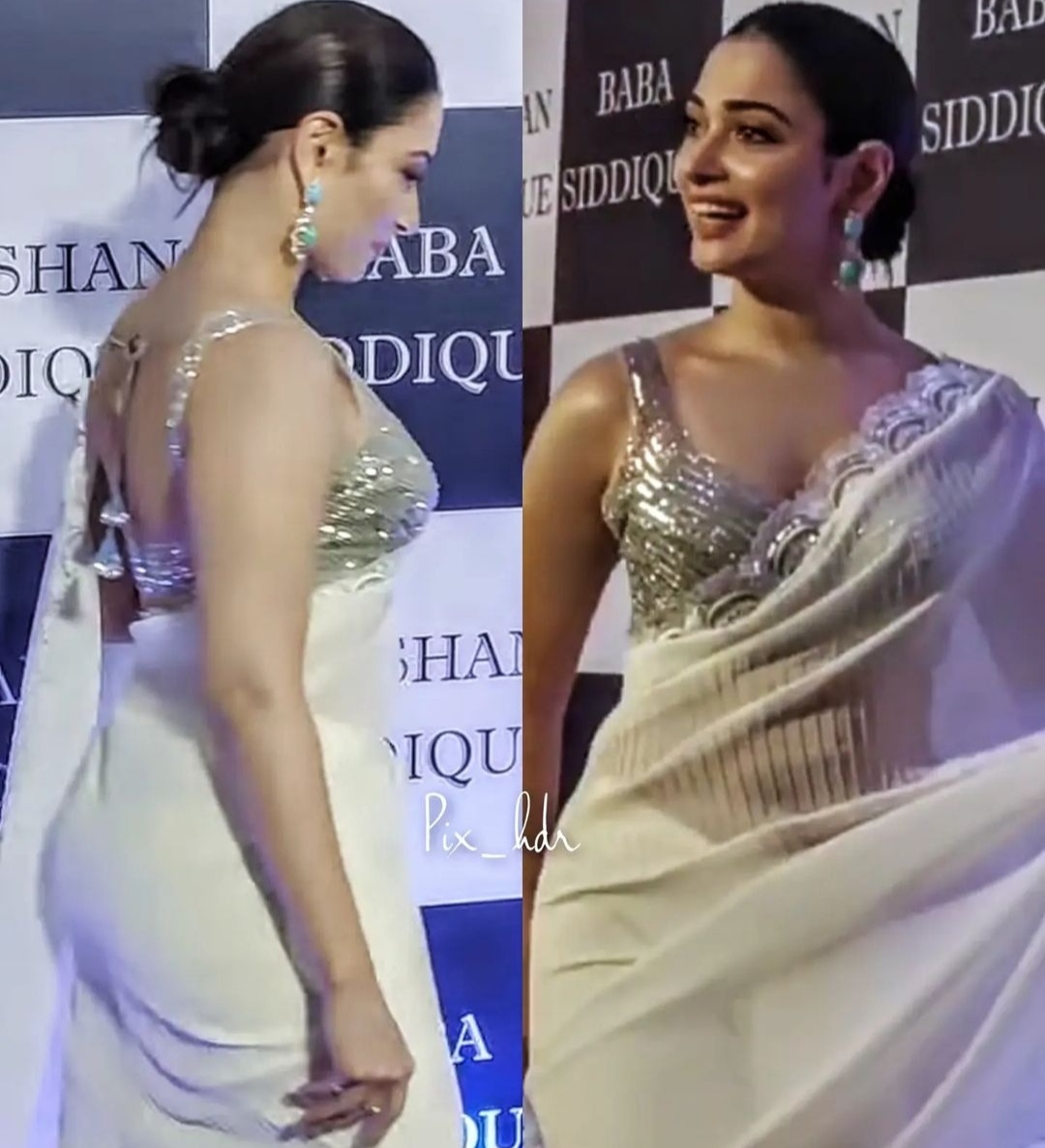 అలాగే మెగాస్టార్ చిరంజీవి సరసన భోళా శంకర్ సినిమాలో తమన్నా హీరోయిన్ గా నటిస్తుంది.  ఇది ఇలా ఉంటే తమన్నా సినిమాల్లో తన అందచందాలతో ఎంతో మంది ప్రేక్షకుల మనసు దోచుకొని ప్రస్తుతం కూడా సినిమా ఇండస్ట్రీ లో తన జోష్ ను కంటిన్యూ చేస్తోంది.  ఇది ఇలా ఉంటే తాజాగా మిల్కీ బ్యూటీ తమన్నా కు సంబంధించిన కొన్ని ఫోటోలు సోషల్ మీడియాలో తెగ వైరల్ అవుతున్నయి.  అసలు విషయంలోకి వెళితే... తాజాగా బాబా సిద్దిఖీ ఇచ్చిన ఇఫ్తార్ విందుకు చాలా మంది బాలీవుడ్ ప్రముఖులు హాజరయ్యారు. తమన్నా కు కూడా ఆహ్వానం అందడంతో ఈ డిన్నర్ కు తమన్నా కూడా హాజరయ్యింది. ఈ డిన్నర్ లో భాగంగా చీర కట్టుకొని , స్లీవ్ లెస్ బ్లౌజ్ వేసుకొని , అందంగా స్మైల్ ఇస్తూ ఉన్న  తమన్నా ఫోటోలు ప్రస్తుతం నెటింట్లో తెగ వైరల్ అవుతున్నాయి.