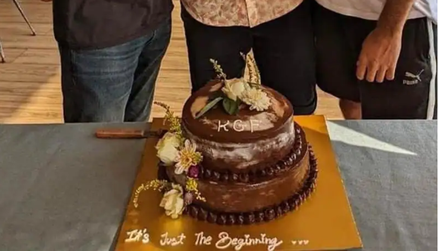 The success party of KGF2 was attended by a large number of film crew including actor yash and director Prasanth Neel. Directed by prashant Neil and starring Yash, kgf 2 is a Pan-India film that was released on april 14 on 10,000 screens across the world. At the end of the film, it was announced that the 3rd part of the film would be made following the huge success of KGF2. It was recently reported that preliminary work for the film has begun. So fans are eager to know what the next part will be like and who will be starring in it. In this case, the kgf team is cutting the cake and celebrating the huge success of the KGF2 film. The success party of the KGF2 film was held in goa and was attended by a large number of film crew including actor yash and director Prasanth Neel. The celebration cake of the success Party featured Ajith's punch line saying that 'It's Just the Beginning ...'. This punch line also tells that KGF's third part will be more extravagant and mass. Photos and videos are going trending on social websites.